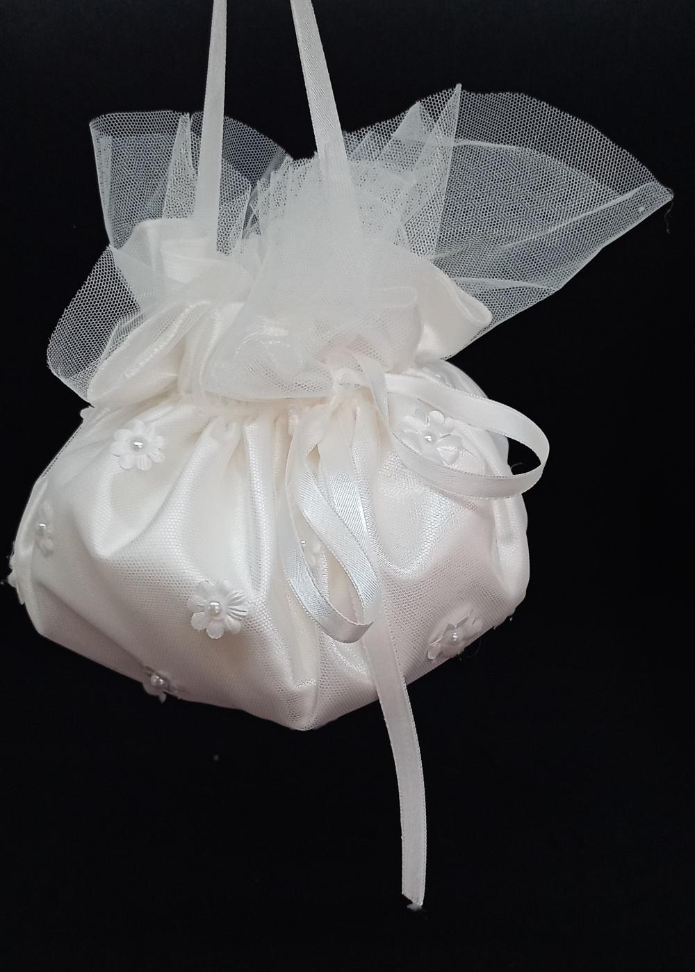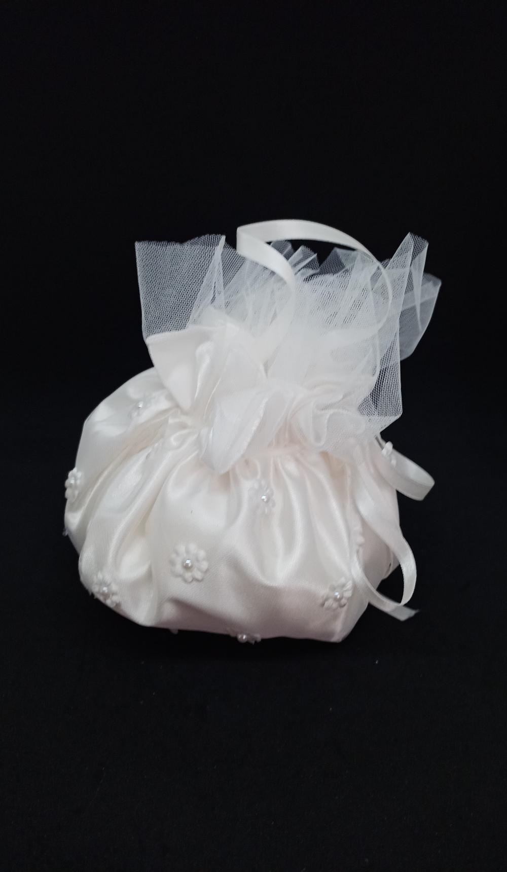 Düğününüzde size sıklık ve zarifliklik katacak takılarınızı rahatlıkla koyabileceğiniz ağız kısmı tüllerle kaplı kurdeleyle bağlanan küçük papatya detaylı incili gelin takı kesesini düğünlük sayfası olarak müşterilerimize sunmaktayız.