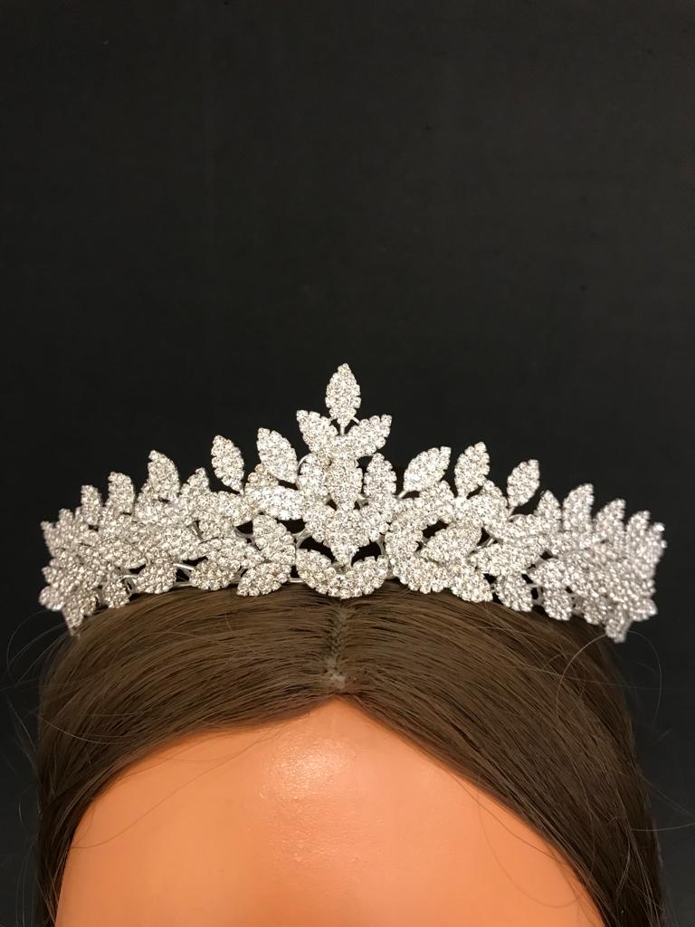 Küçük Taşlarla Süsülenmiş Yaprak Model Prenses Gelin Tacı