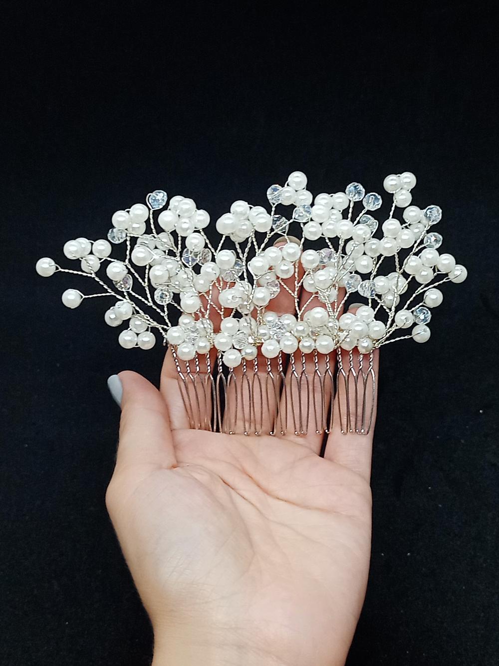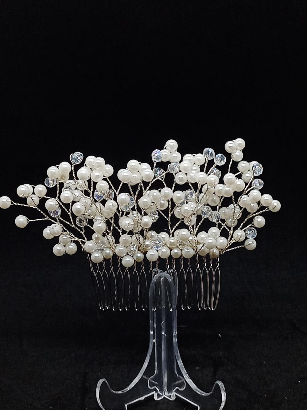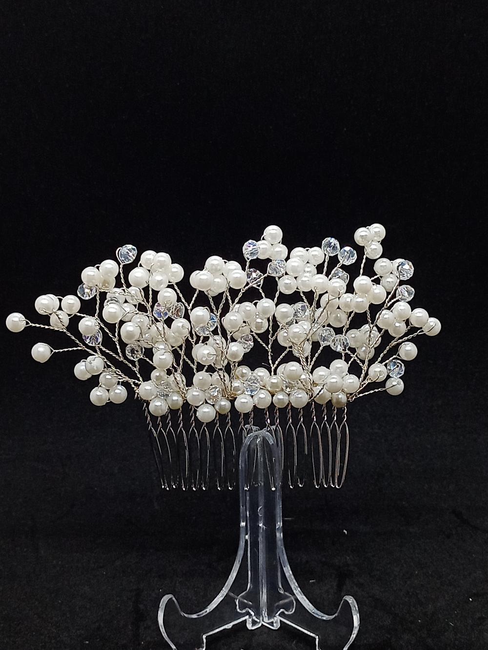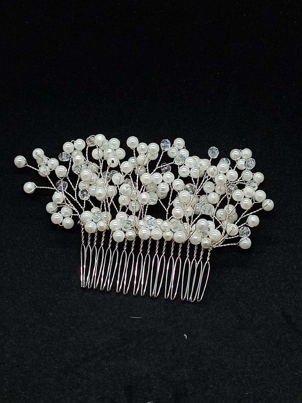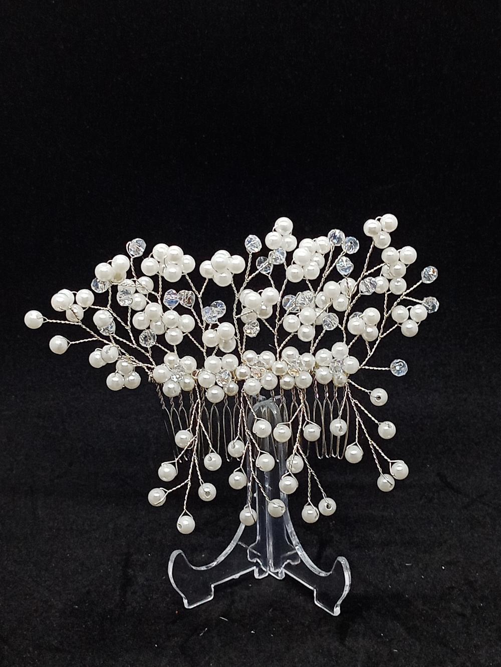 Küçük Top İnci ve Kristallerden Oluşan Gelin Tokası