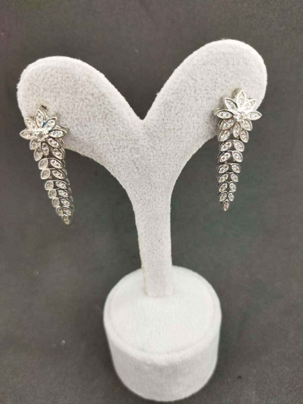 Küçük Yaprak Kristallerle Süslenmiş Gümüş Renk Takı Seti