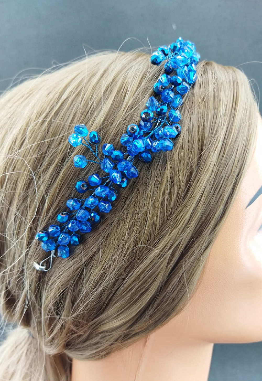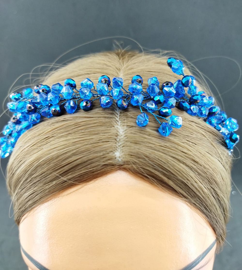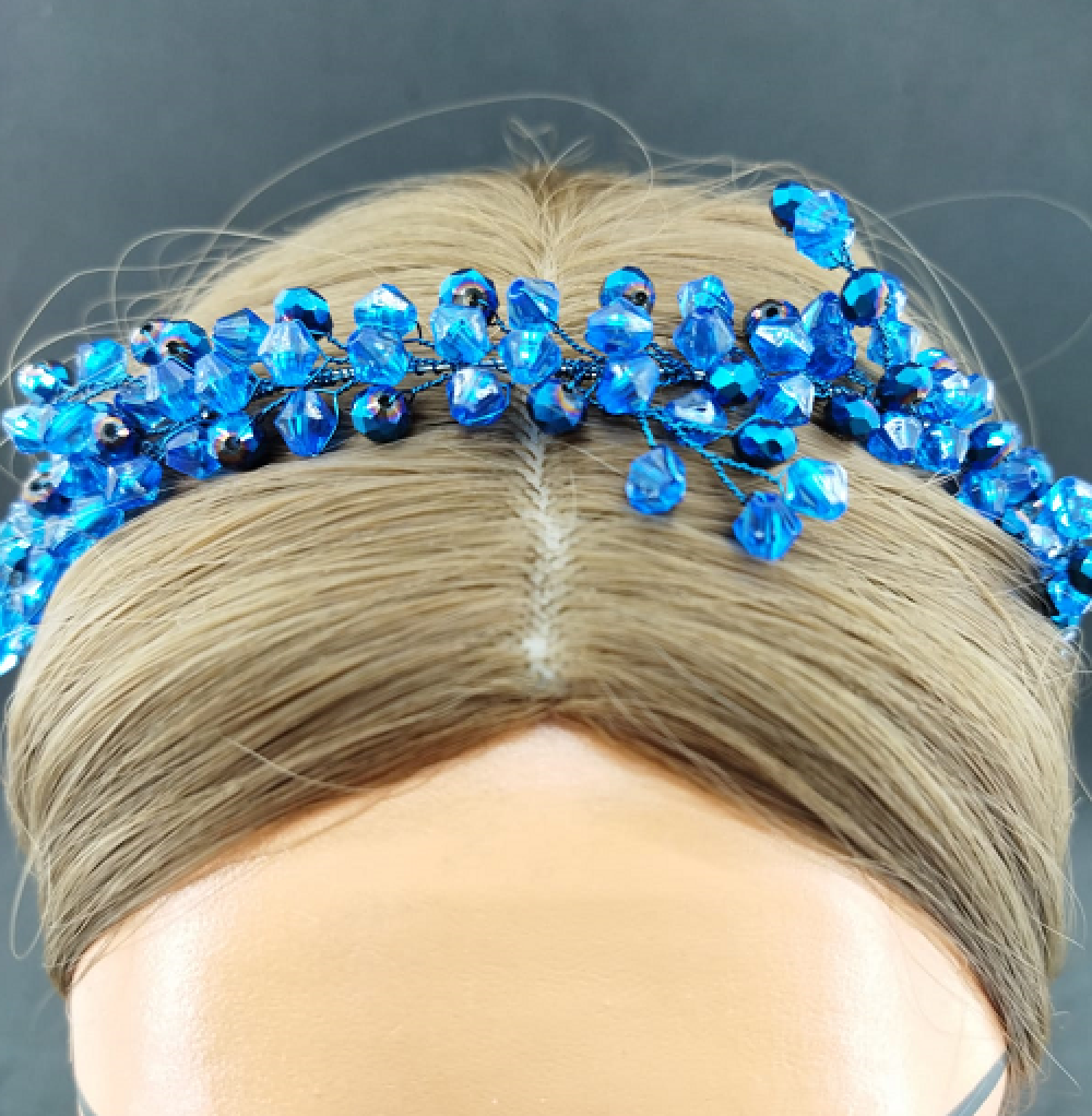 Lacivert Kristallerle Süslenmiş Gelin Tacı
