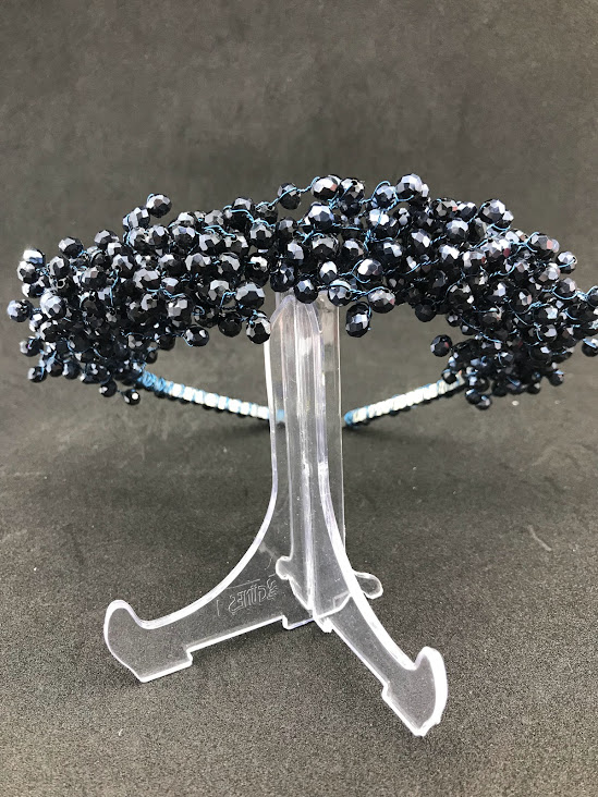 Lacivert Kristal Taşlı Zarif Gelin Nişan Kına Tacı