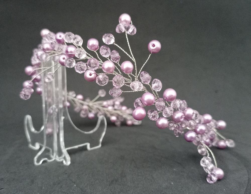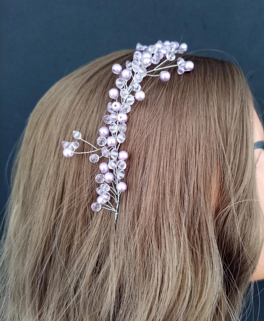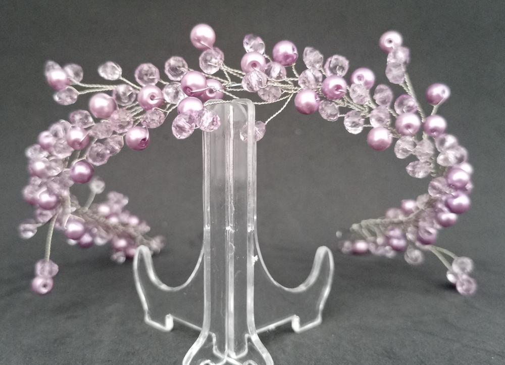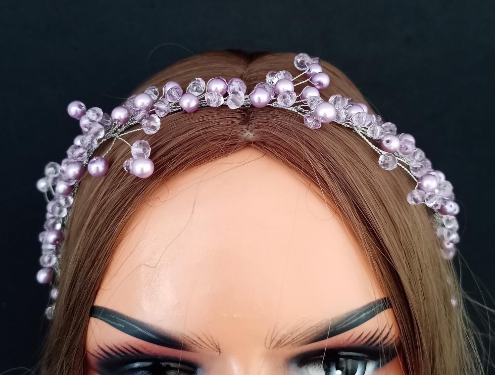 Lila İnci Ve Kristallerle Süslenmiş Gelin Tacı