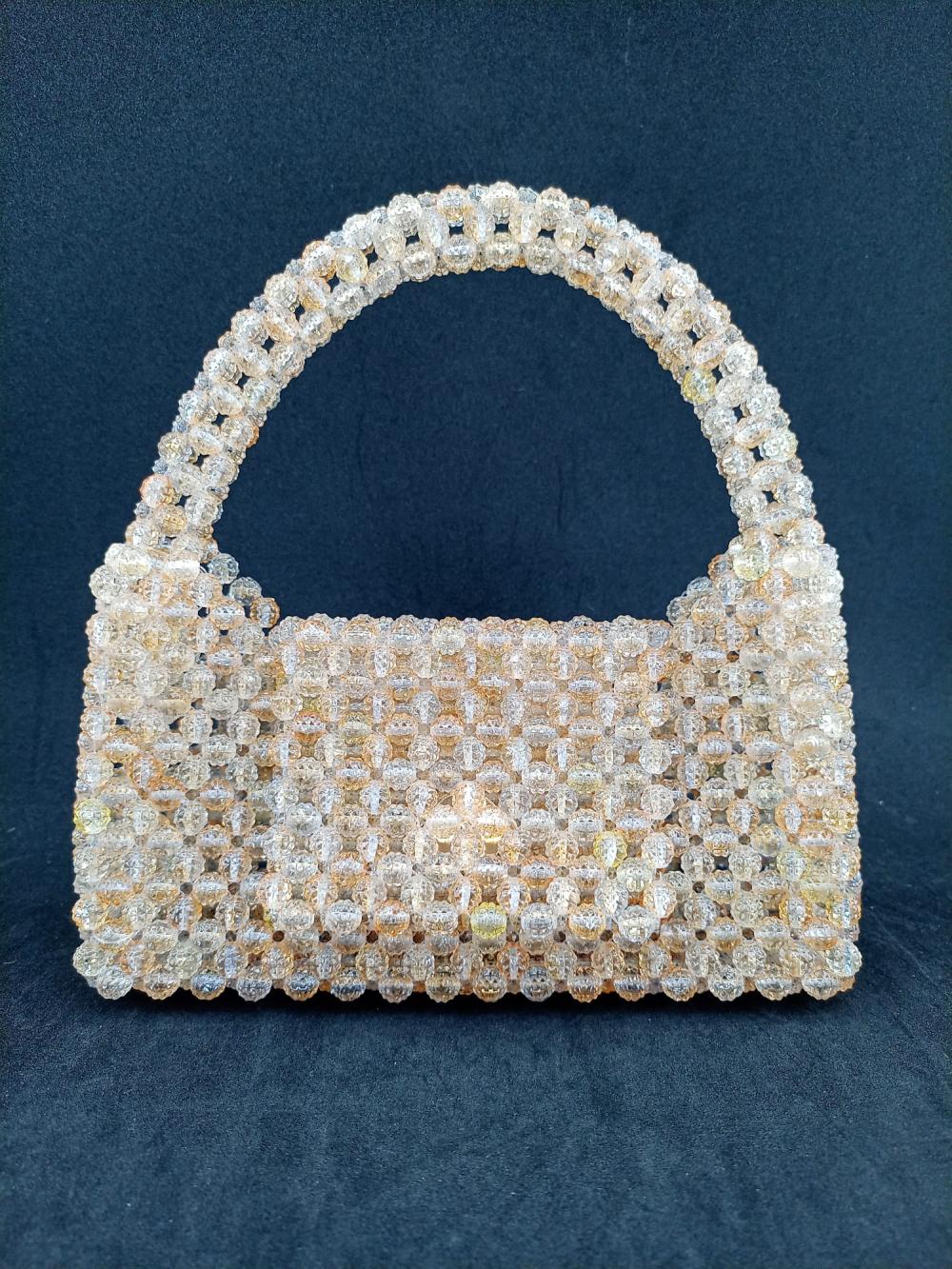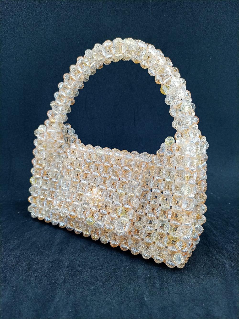 Lotus Sarı Renk Kristallerle Süslenmiş Kadın Abiye El Çantası