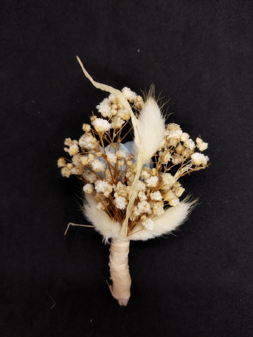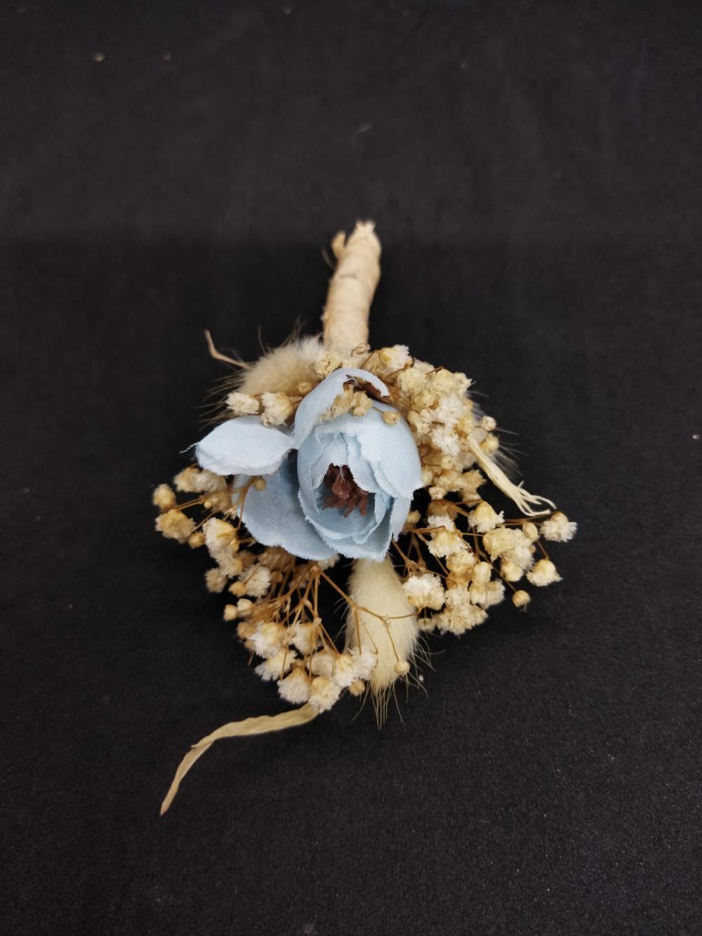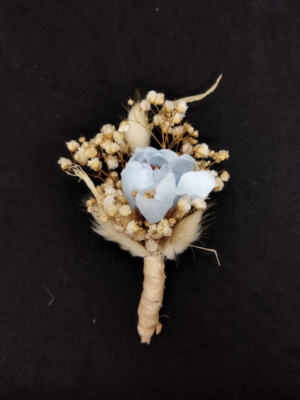 Mavi Gülden Ve Cipsolardan Oluşan Damat Yaka Çiçeği