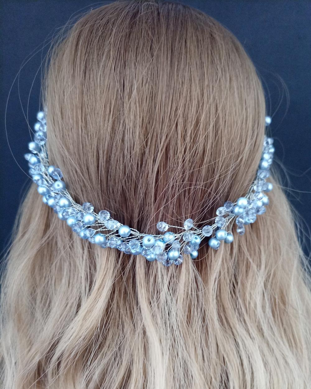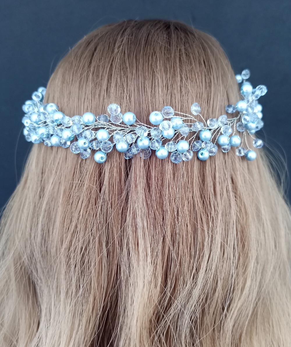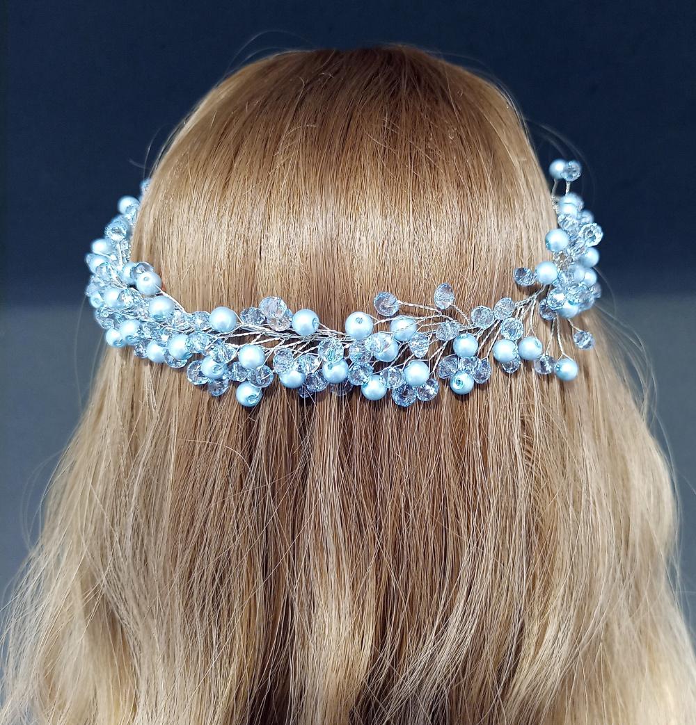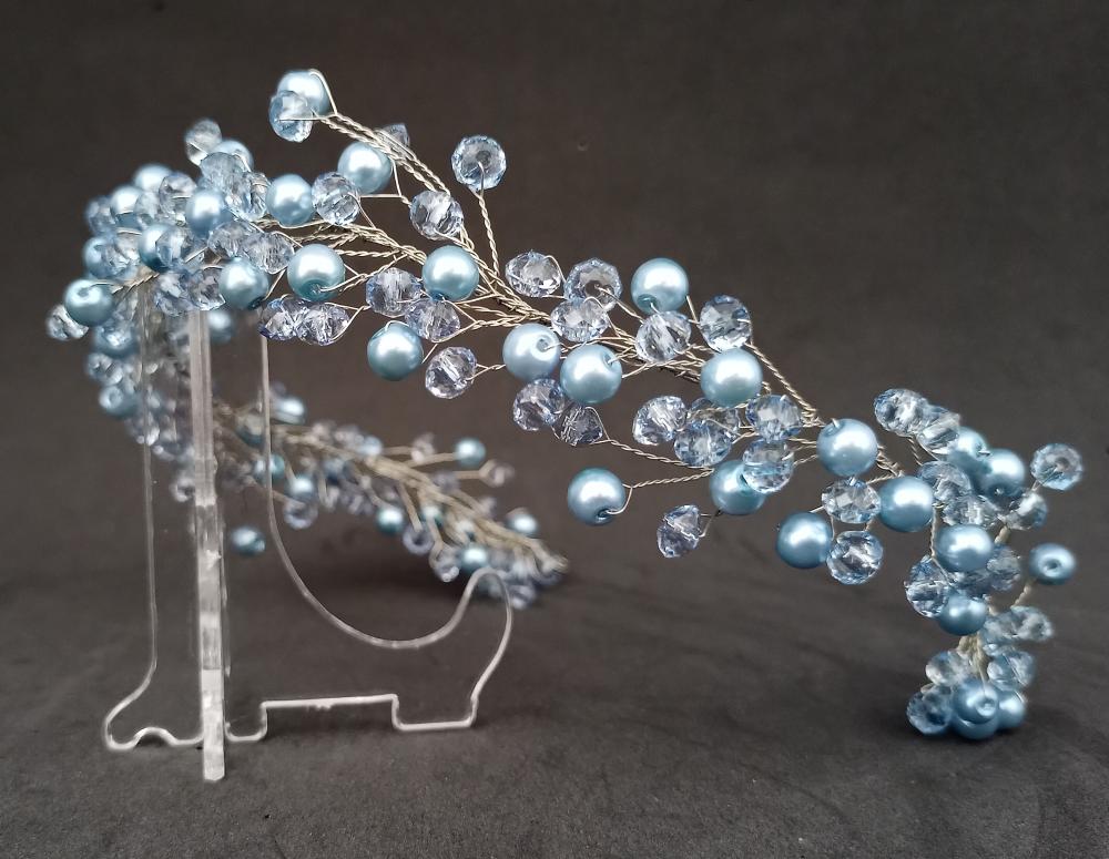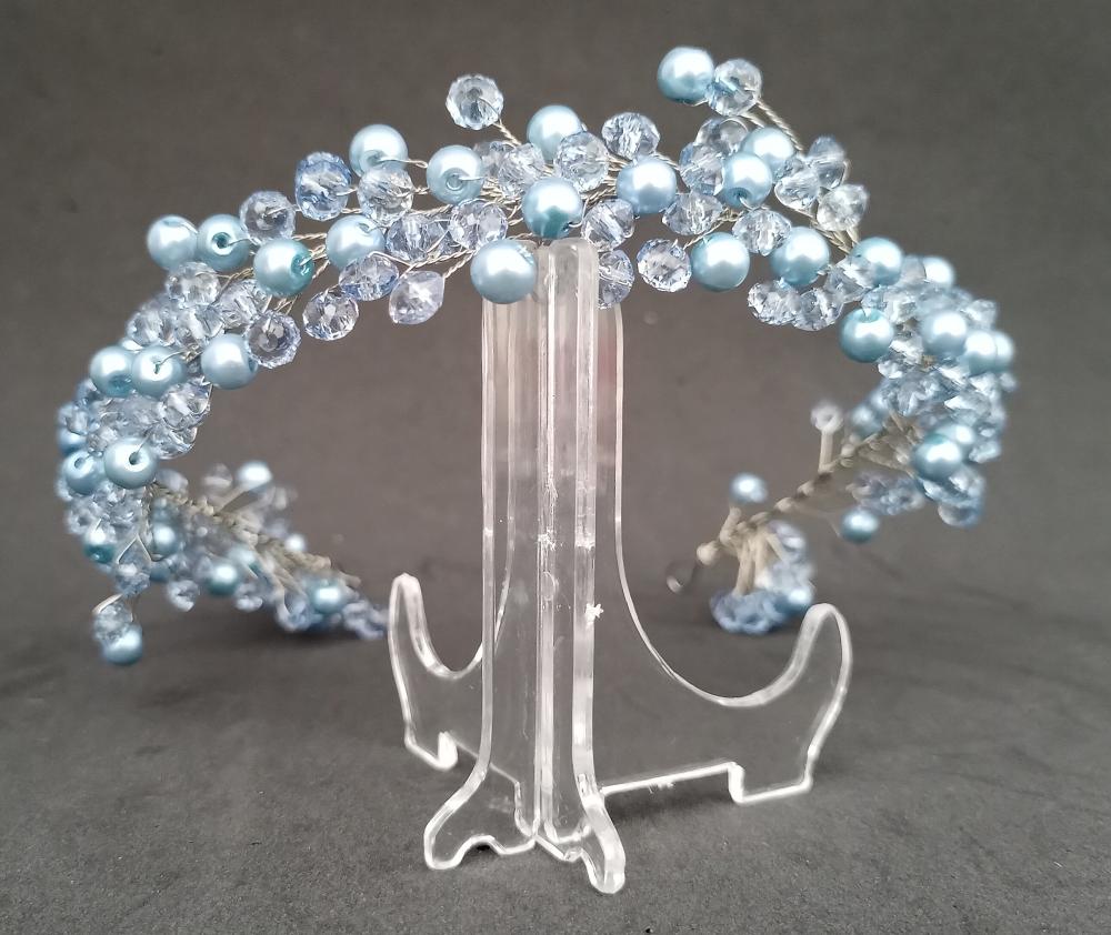 Mavi İnci Ve Kristallerden Oluşan Gelin Tacı