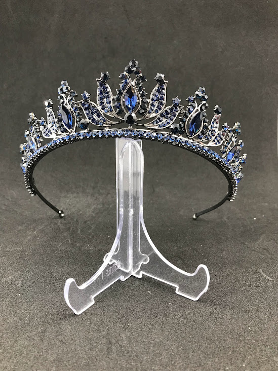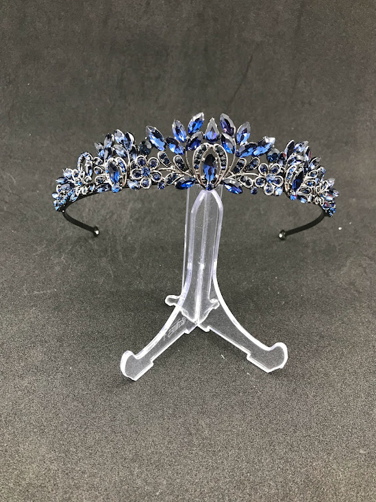 Mavi Kristal Taş İşleme Nişan Kına Gelin Tacı