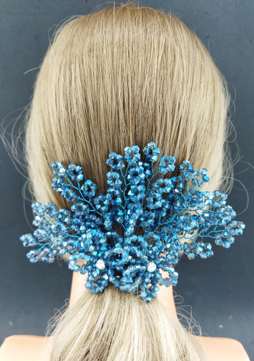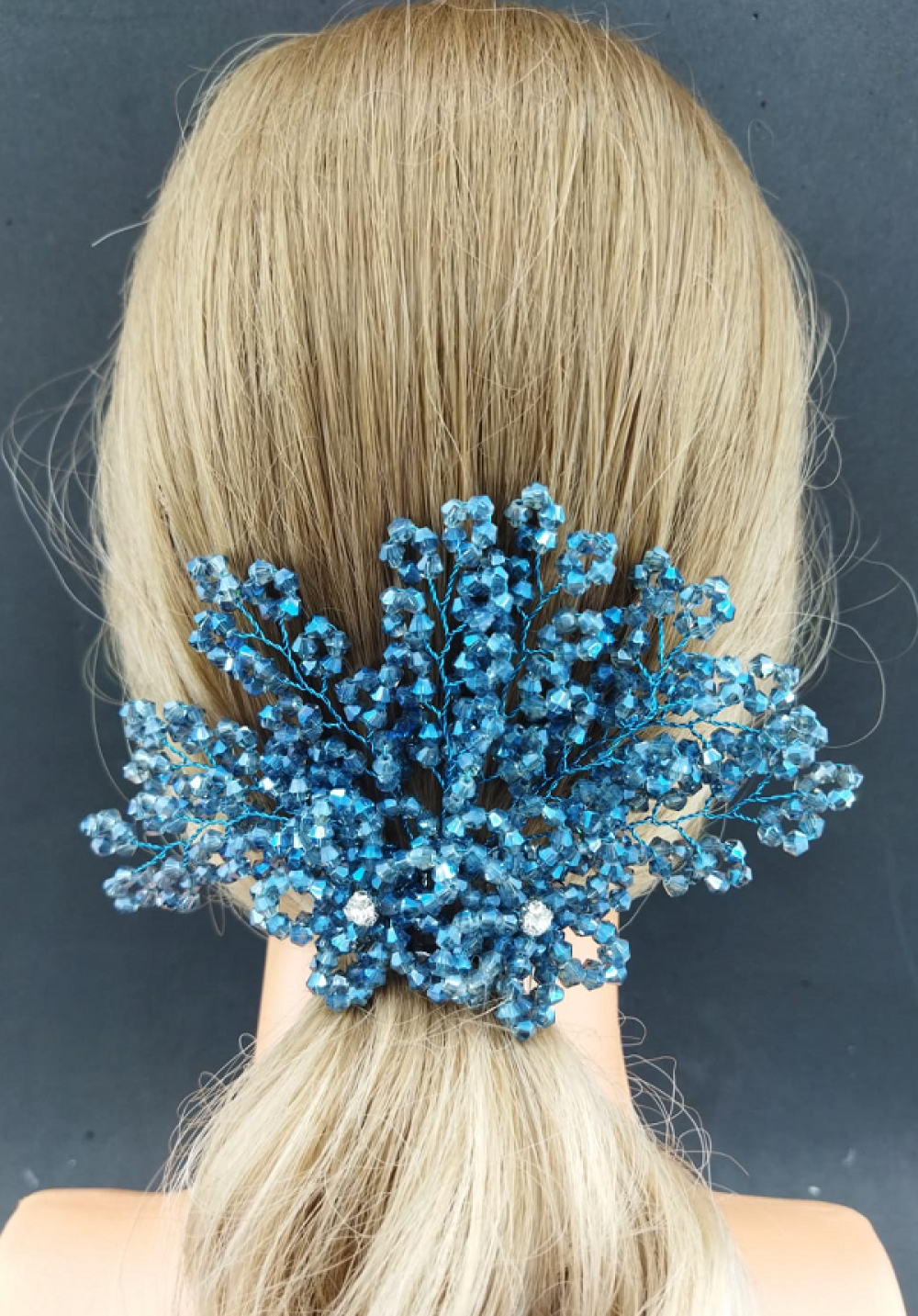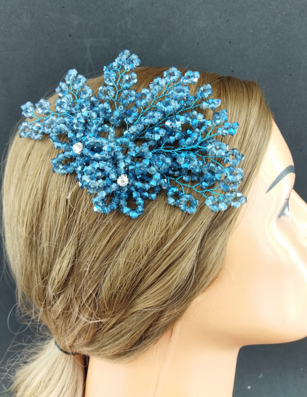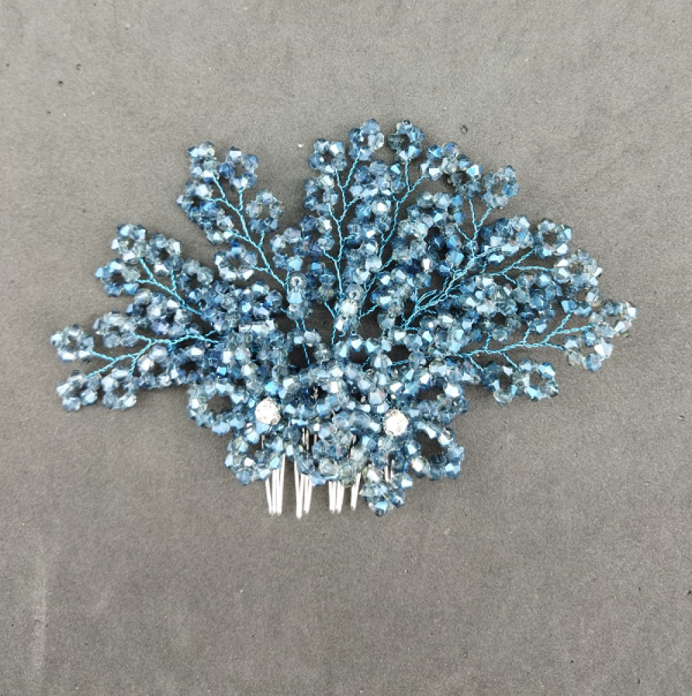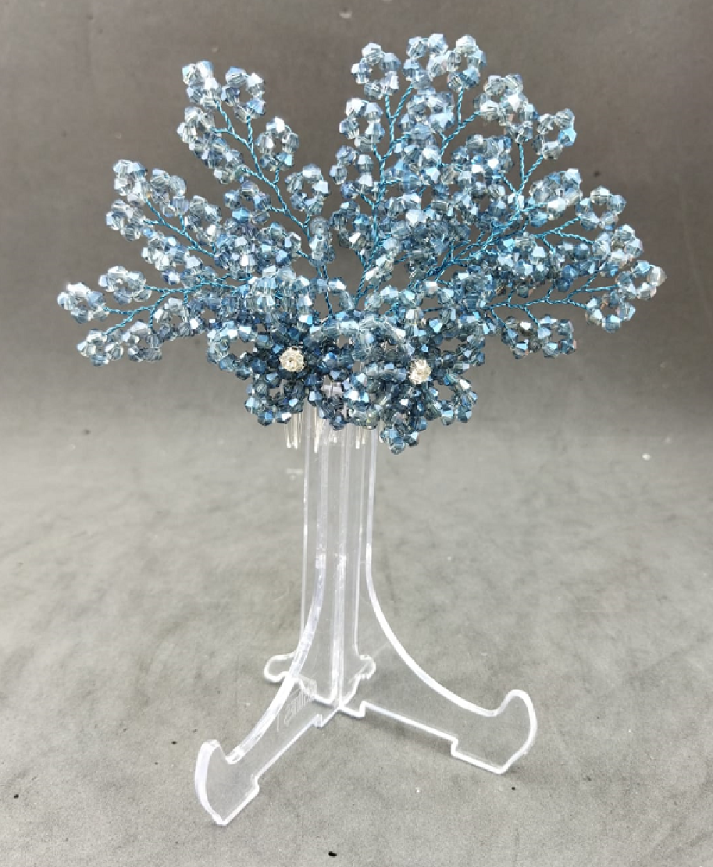 Mavi Kristallerle Süslenmiş Çiçek Deseni Detaylı Kına Tokası