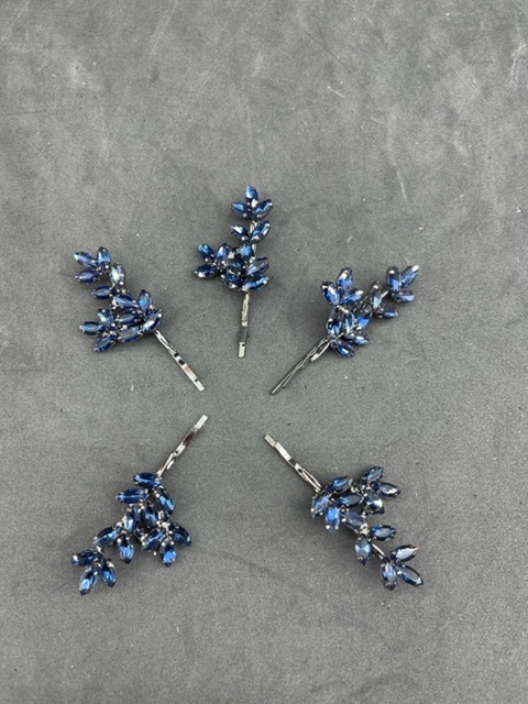 Mavi Kristallerle Süslenmiş Nişan Kına Gelin Saç Tokası