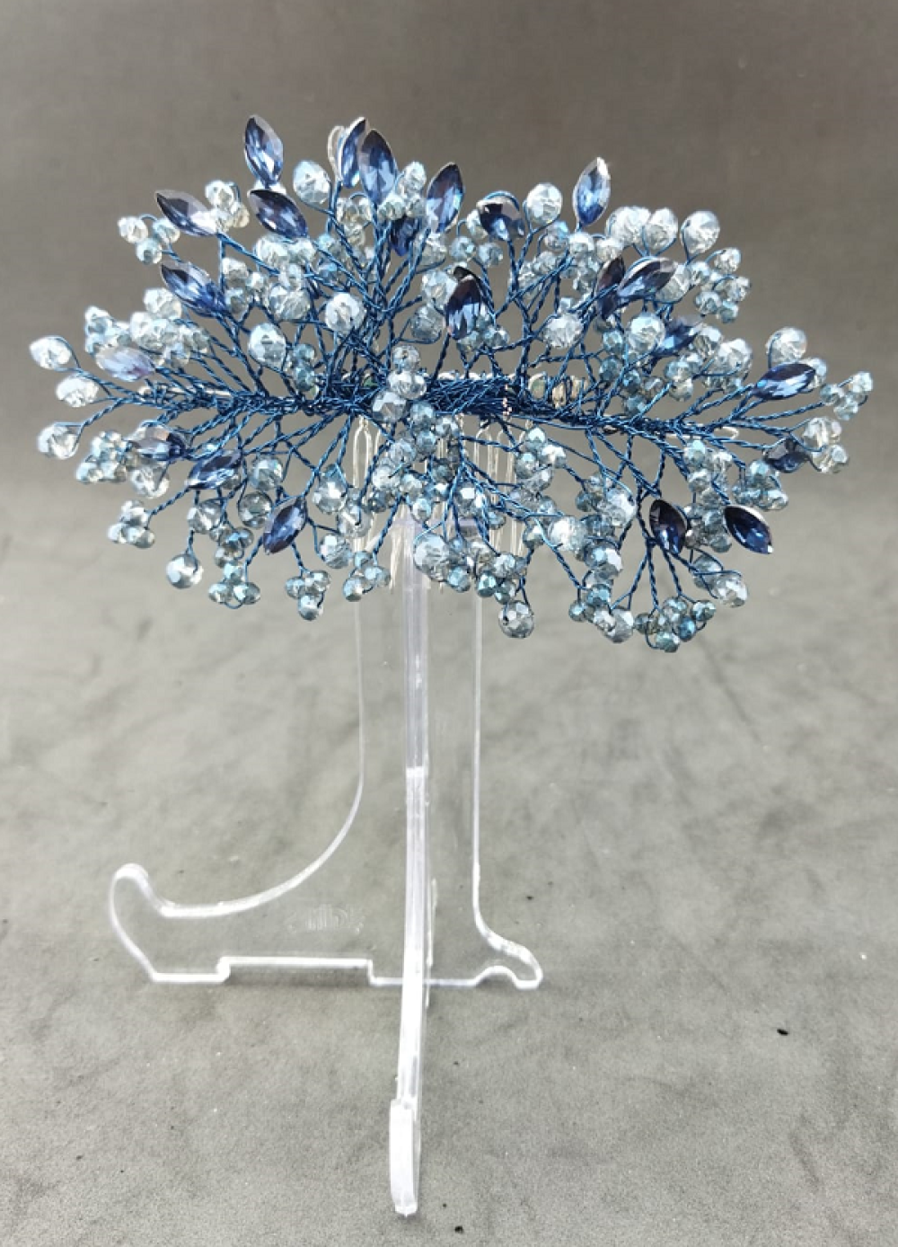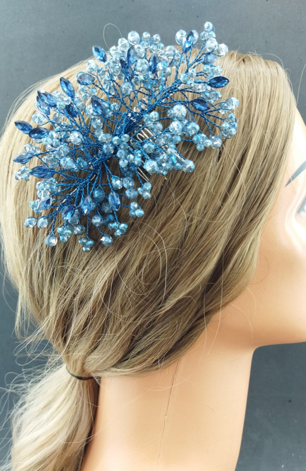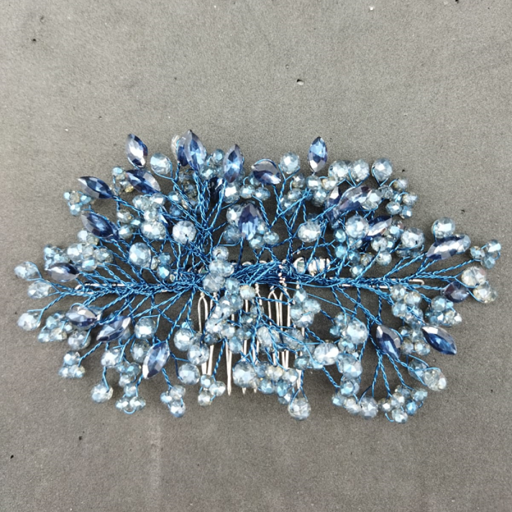 Mavi Tonları Kristallerle Süslenmiş Gelin Tokası