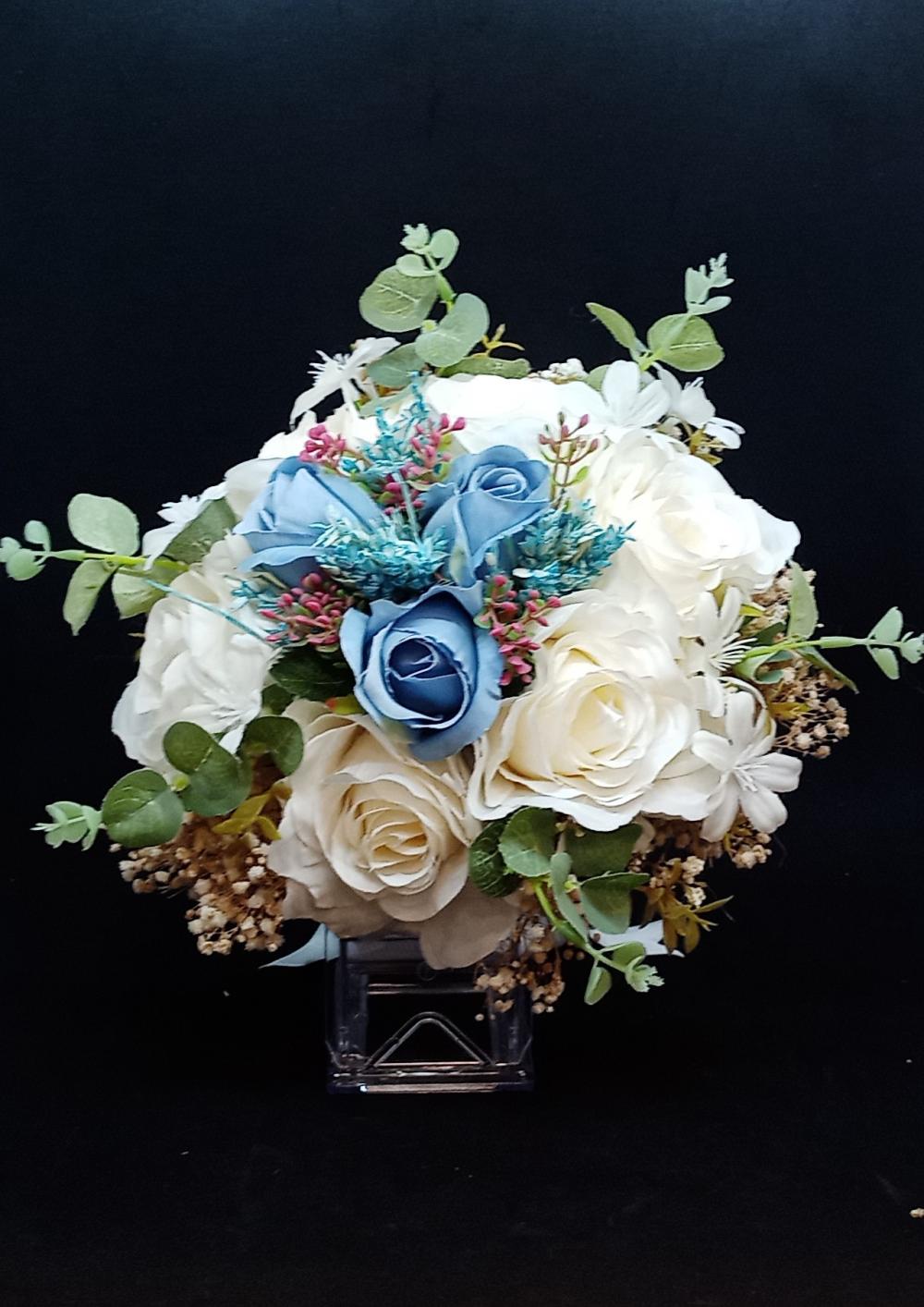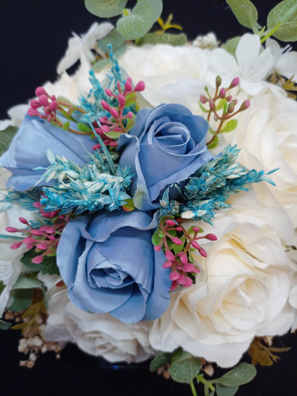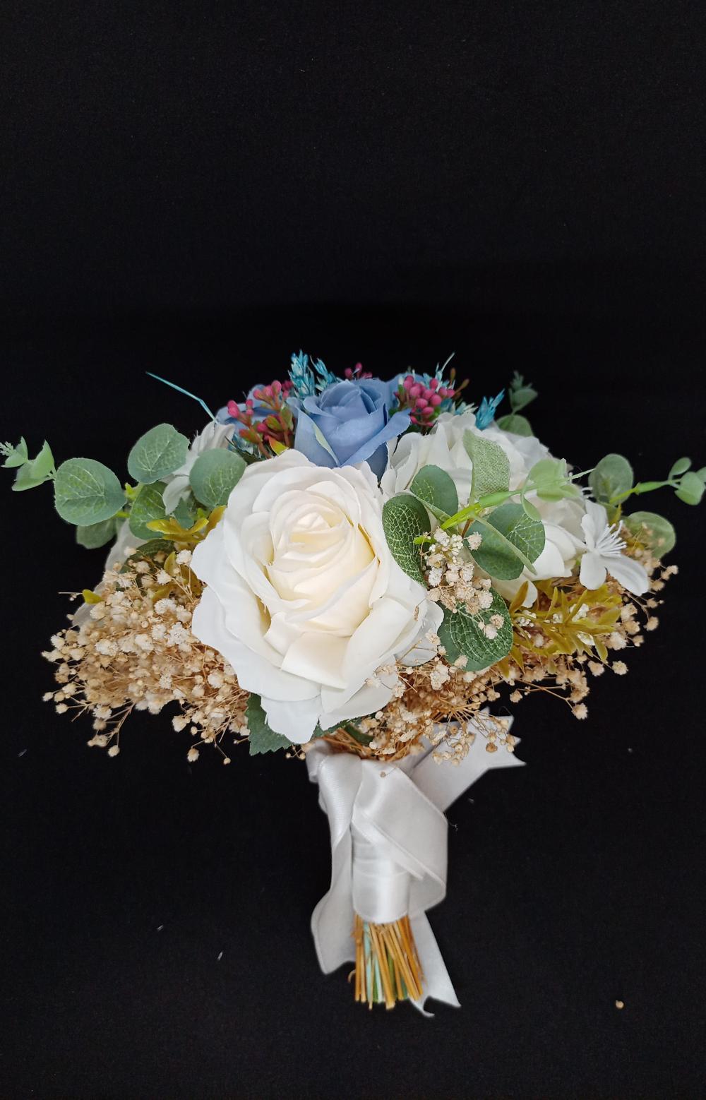 Mavi Ve Beyaz Güllerden Oluşan Gelin Buketi