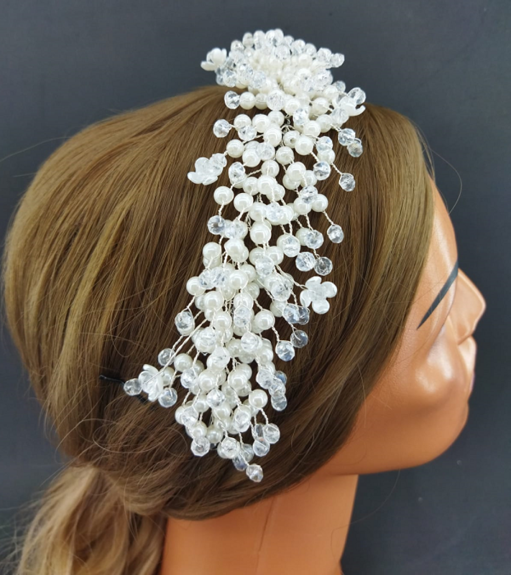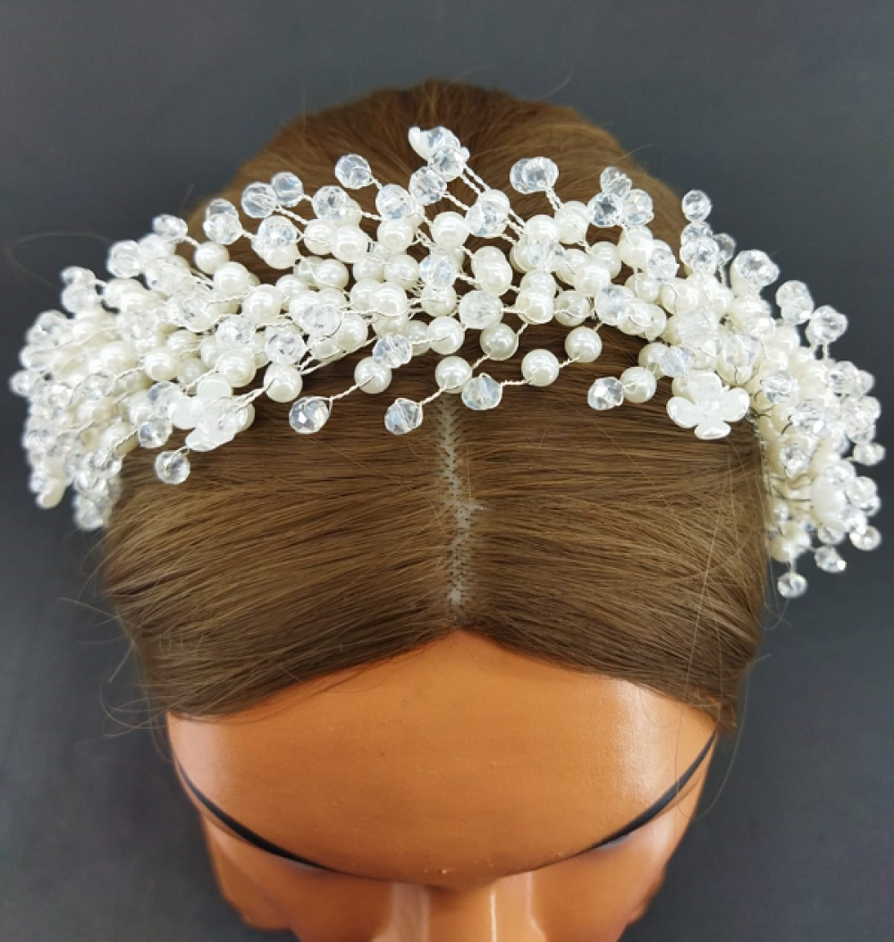 Kristal Ve İncilerle Süslenmiş Helen Model Nişan Gelin Tacı