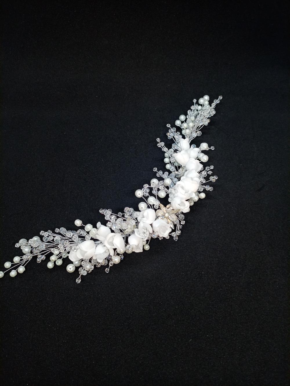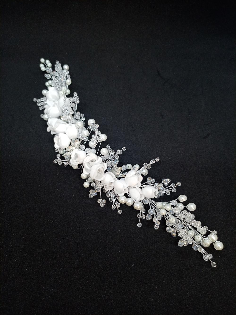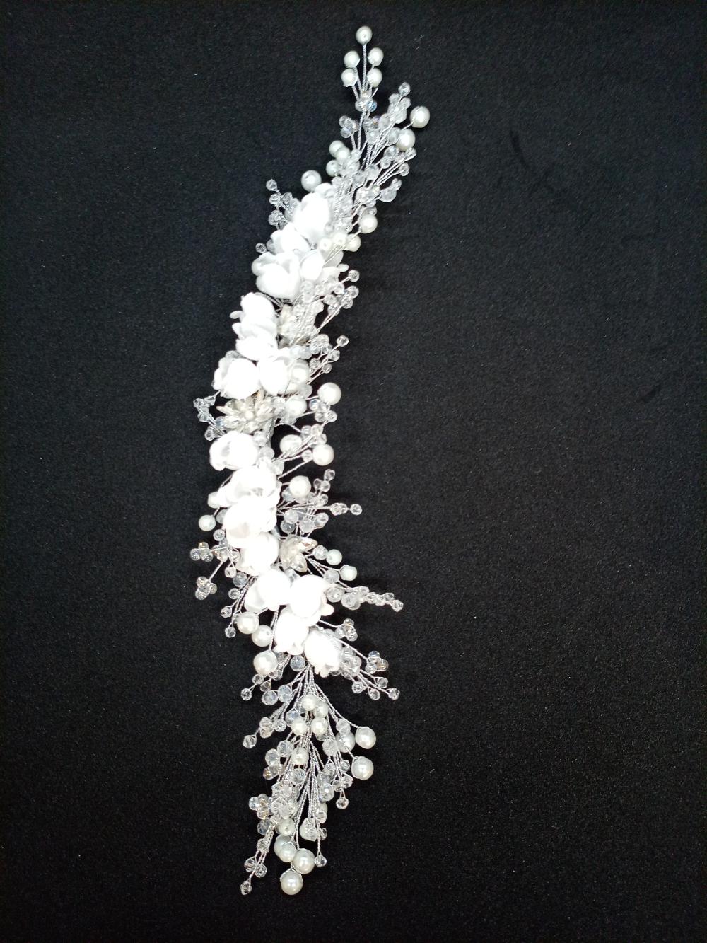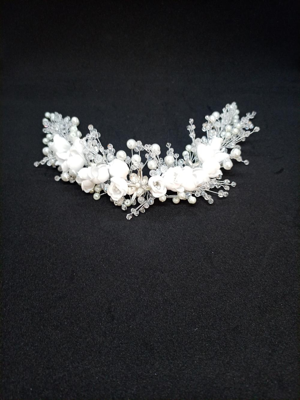 Minik Çiçeklere Sahip İnci Ve Kristal Boncuk Detaylı Helenistik Gelin Tacı