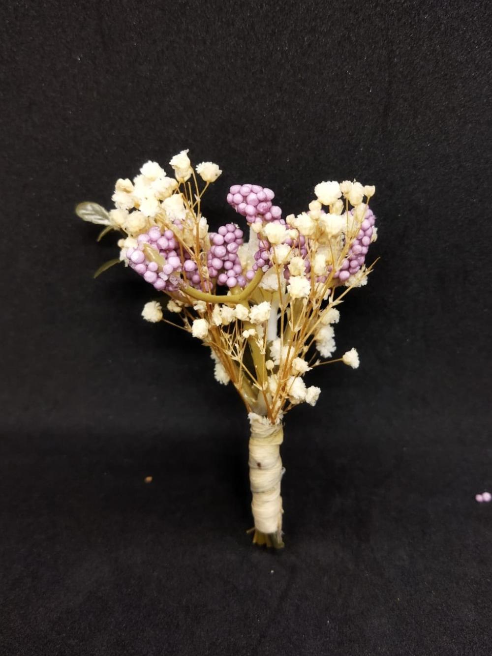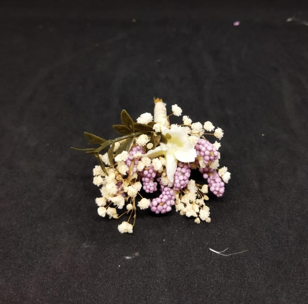 Mor Detaylara Sahip Krem Cipsolarla Süslenmiş Damat Yaka Çiçeği