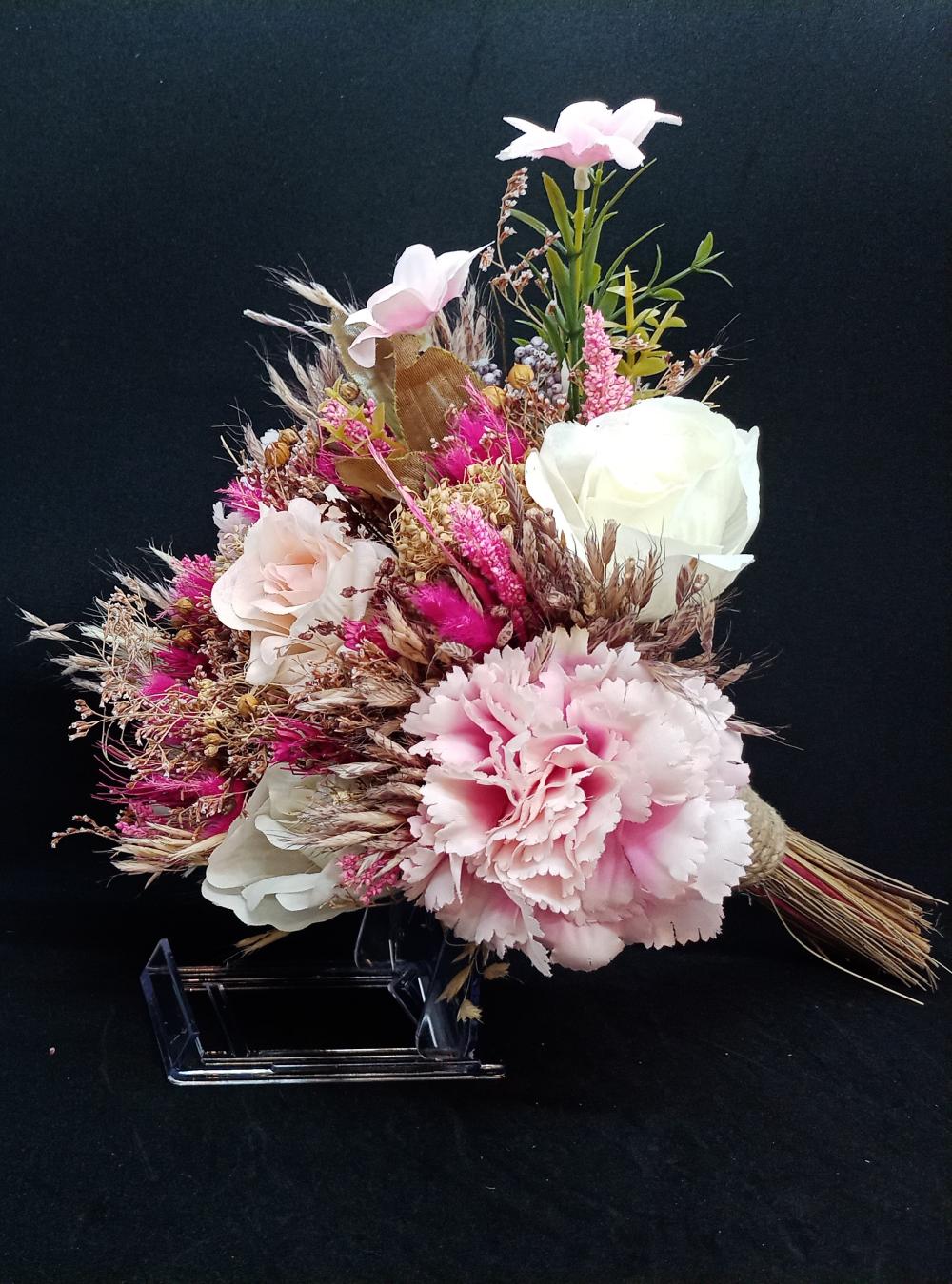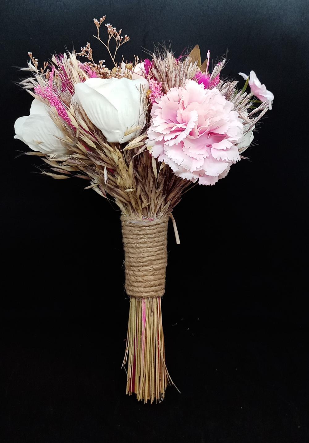 Pembe Detaylara Sahip Pembe Beyaz Gül Gelin Buketi