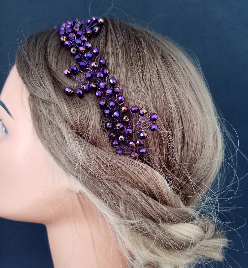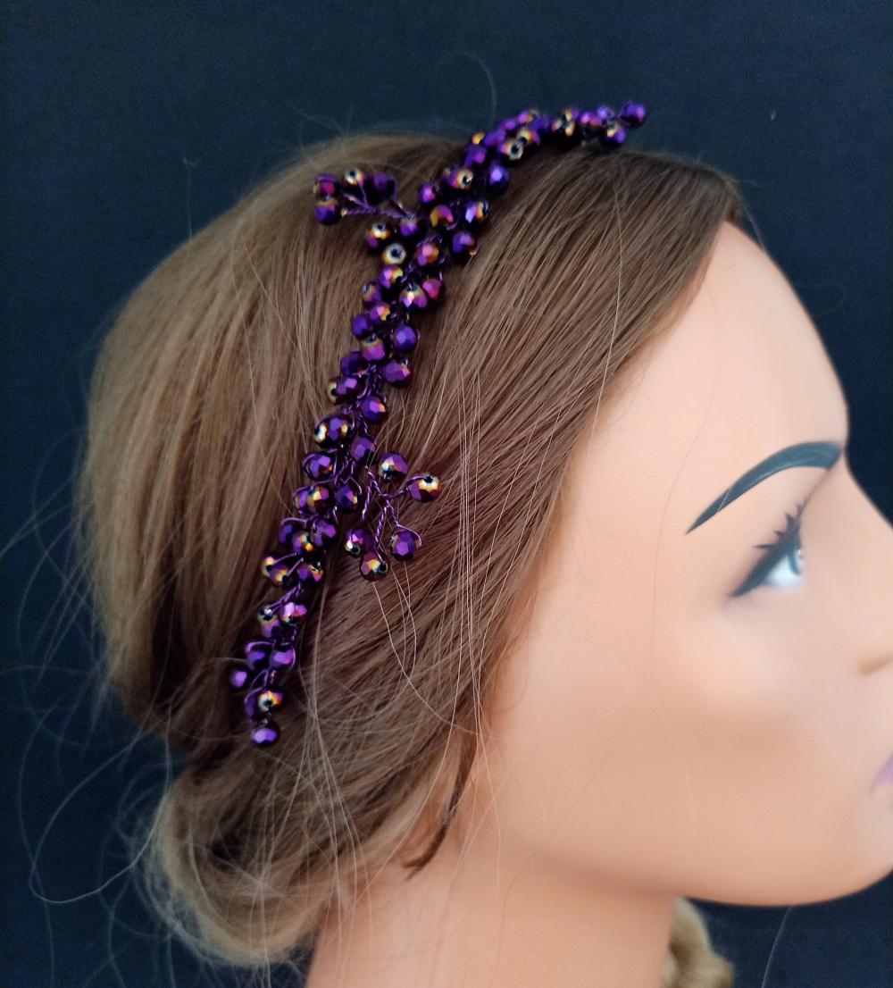 Mor İnci Ve Kristallerden Oluşan Gelin Tacı