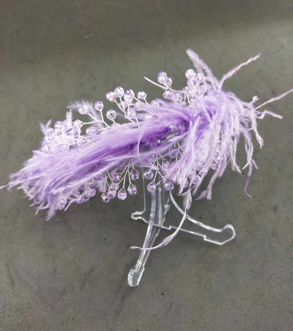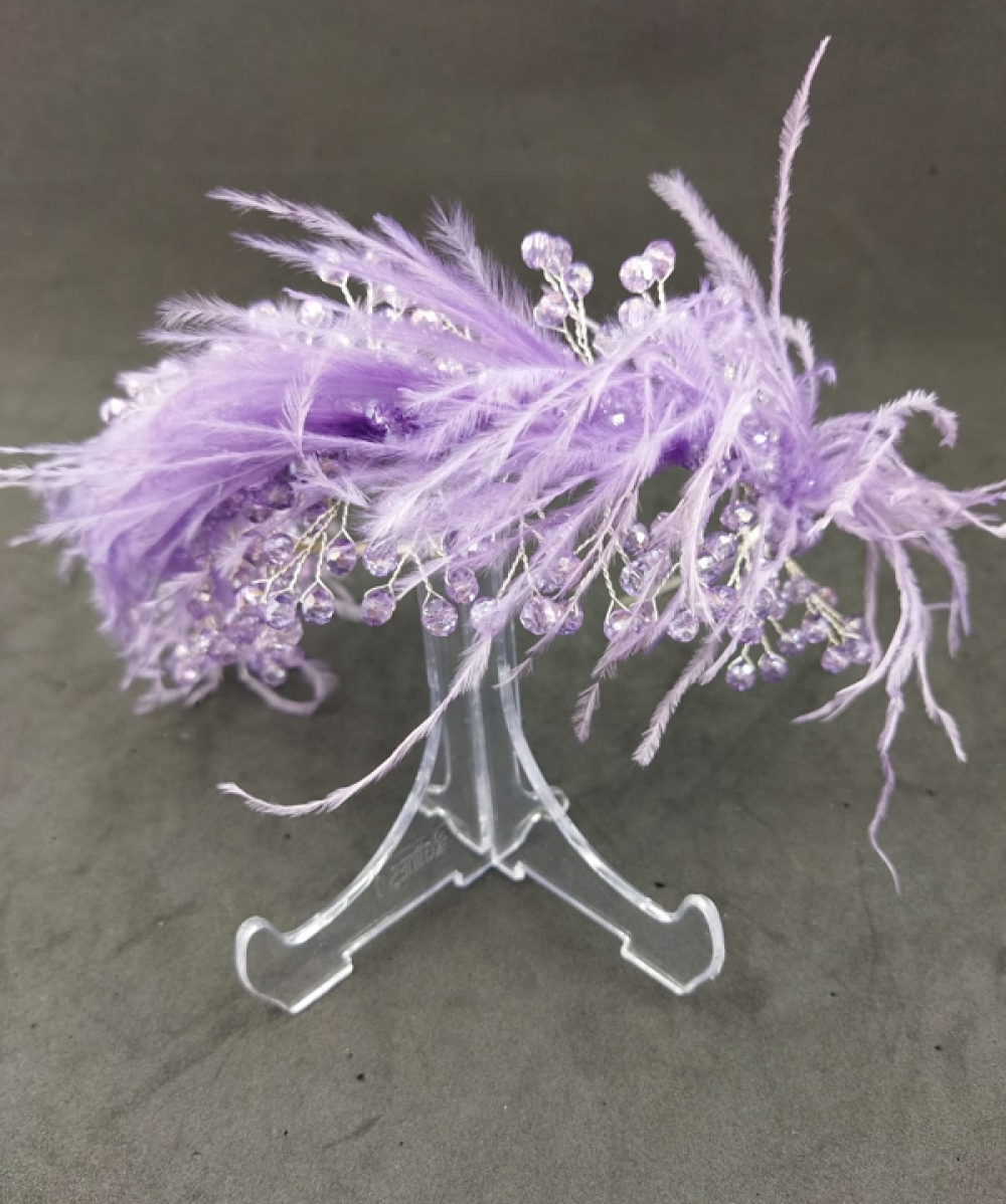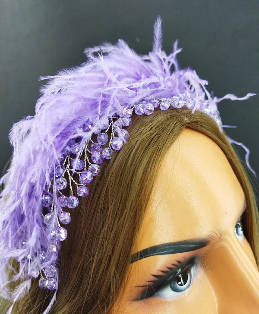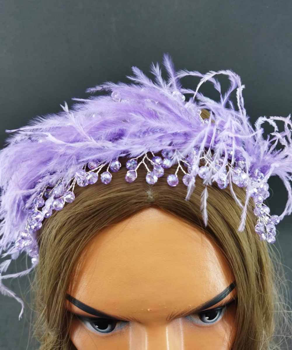 Mor Kristaller Ve Tüylerle Süslenmiş Gelin Tacı