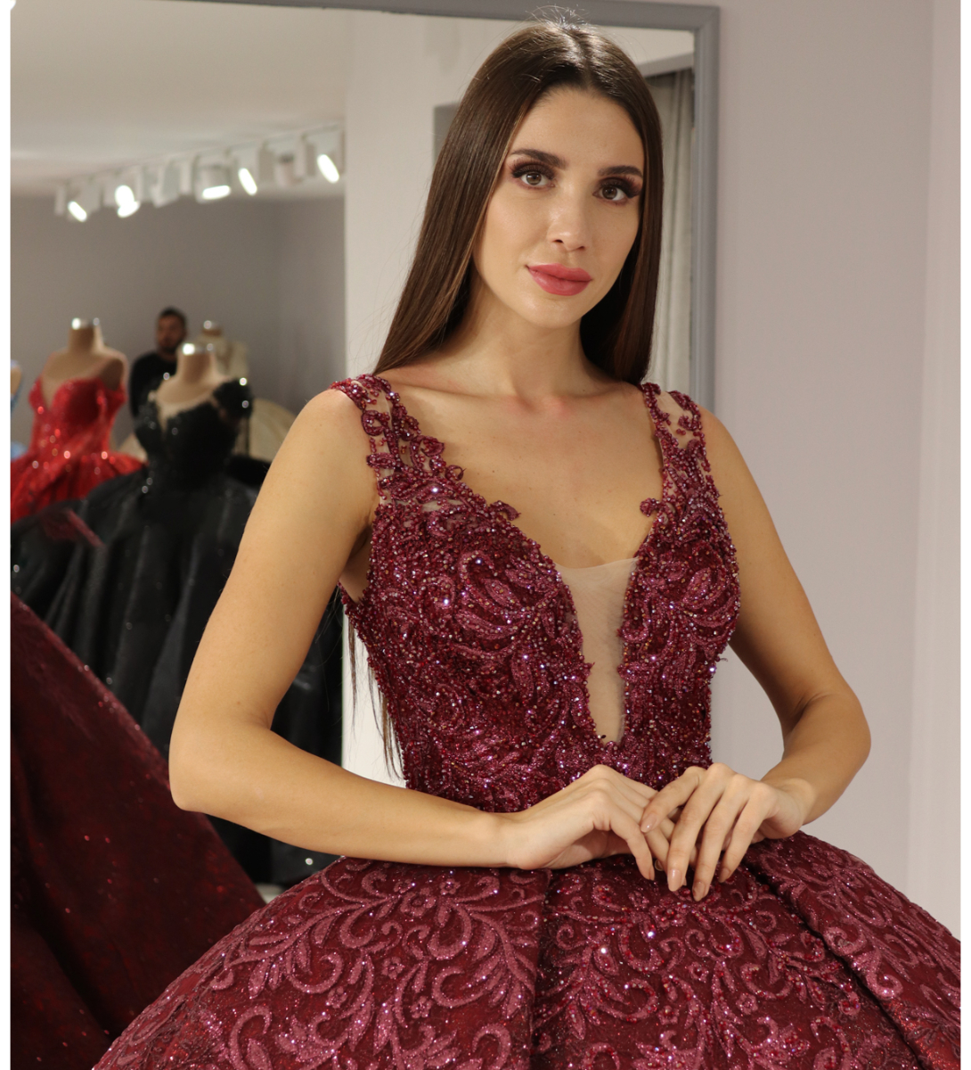 Mürdüm Rengi V Yaka Prenses Nişanlık