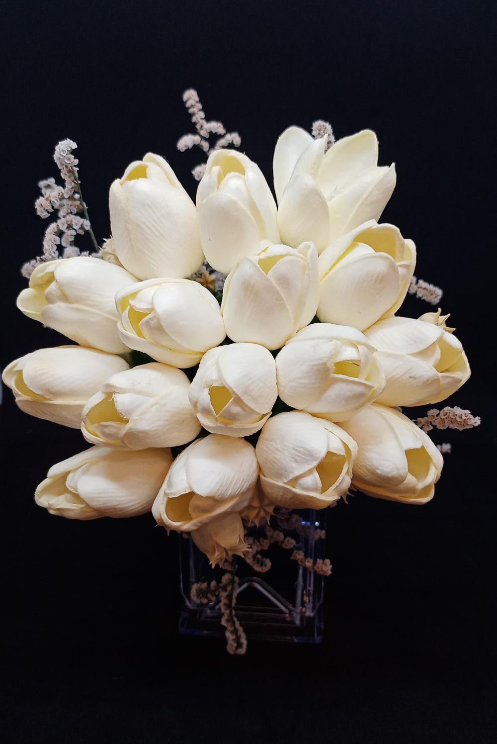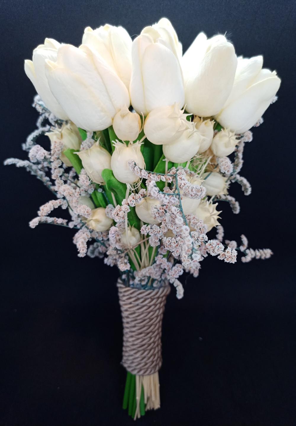 Otlarla Süslenmiş Beyaz Lale Gelin Buketi