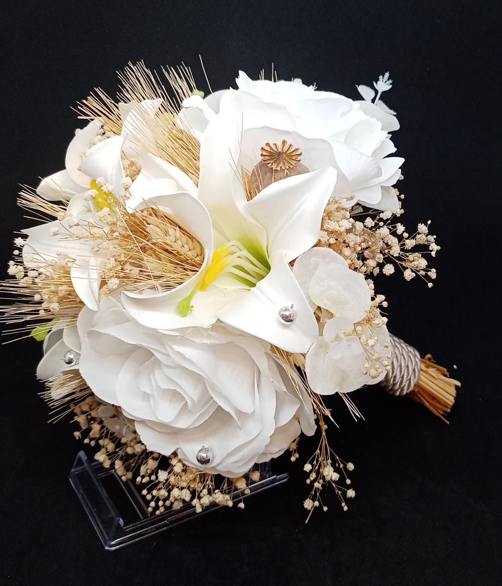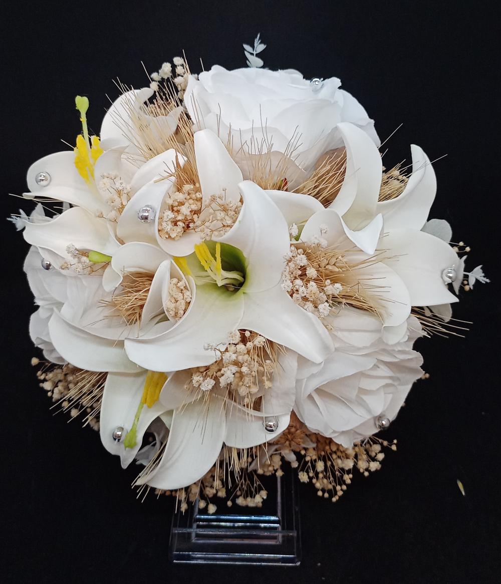 Parlak Boncuklara Sahip Beyaz Zambak Gelin Buketi