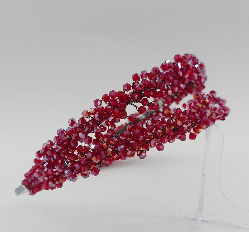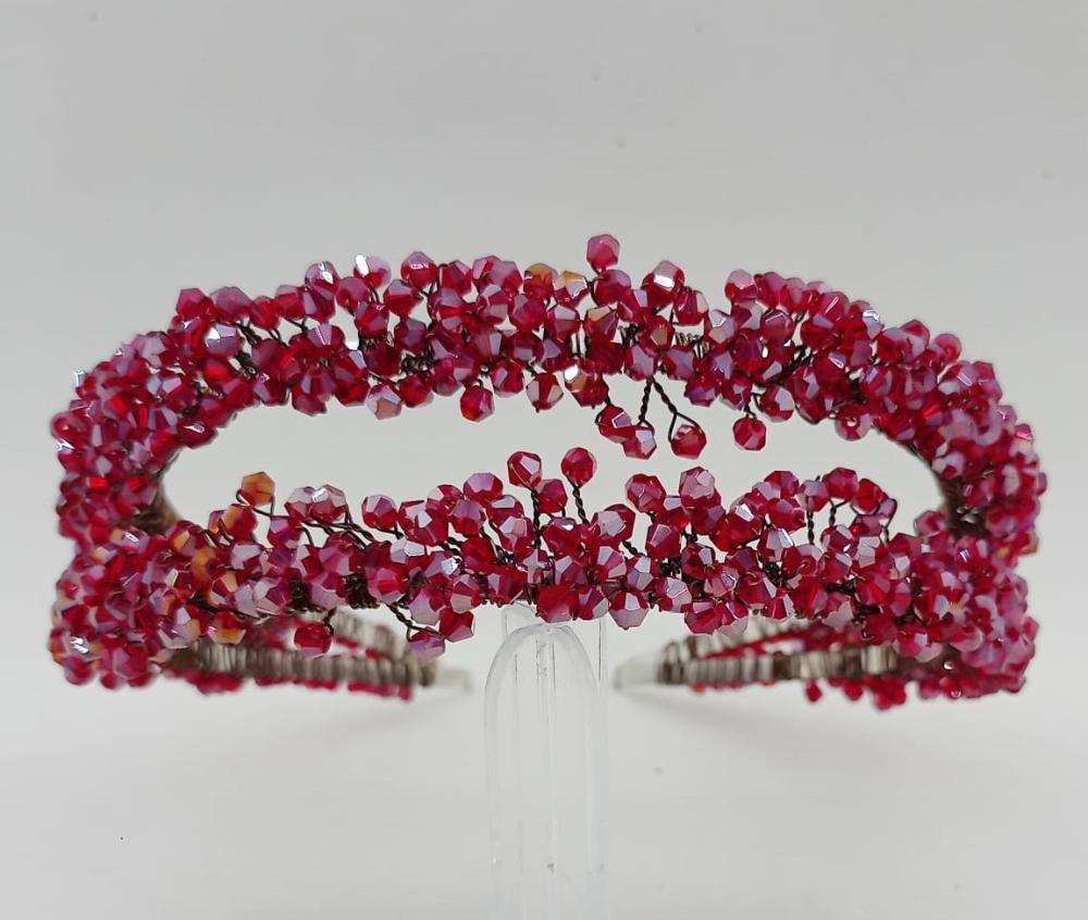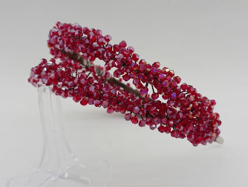 Parlak Kırmızı Kristal Boncuklardan Oluşan İkili Gelin Kına Tacı