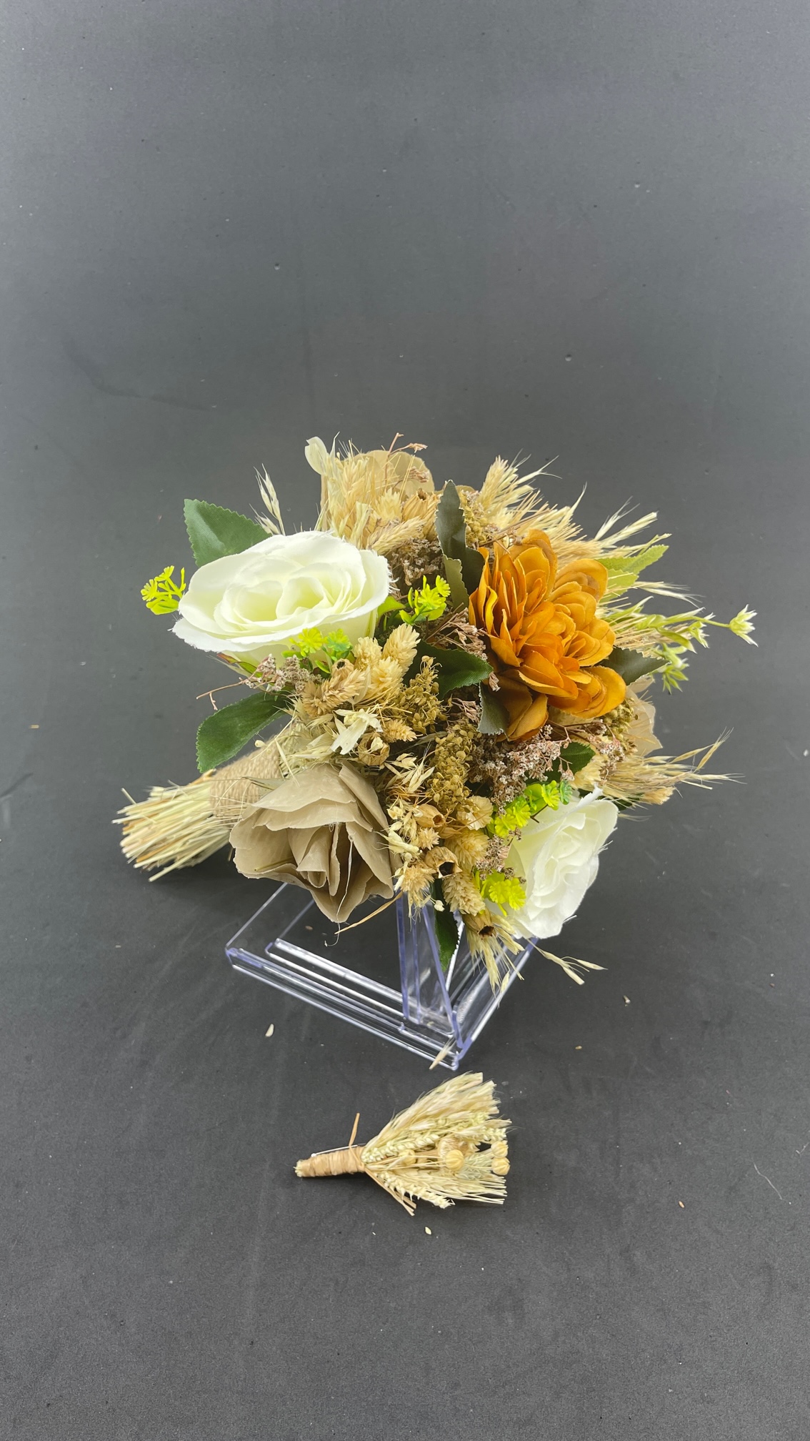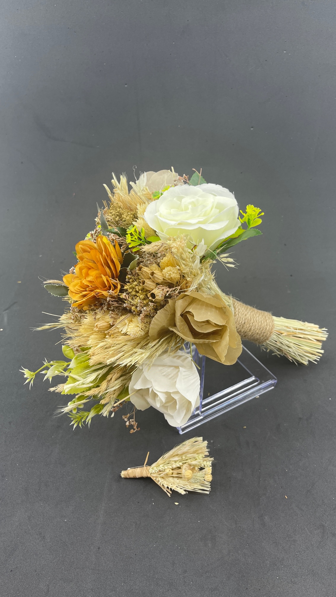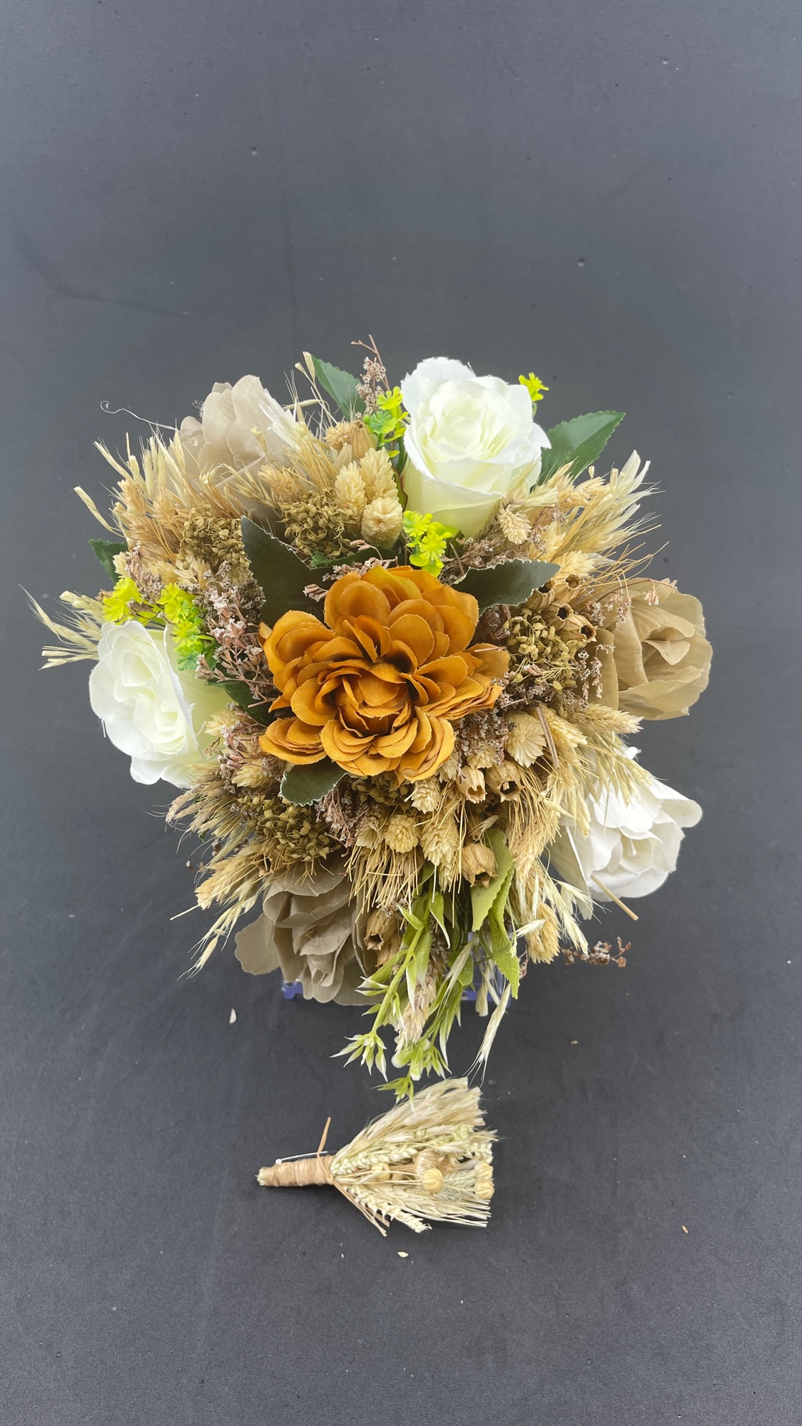 Pastel Tonlarda Beyaz Gül Detaylı Aranjman Gelin Buketi Ve Damat Yaka Çiçeği