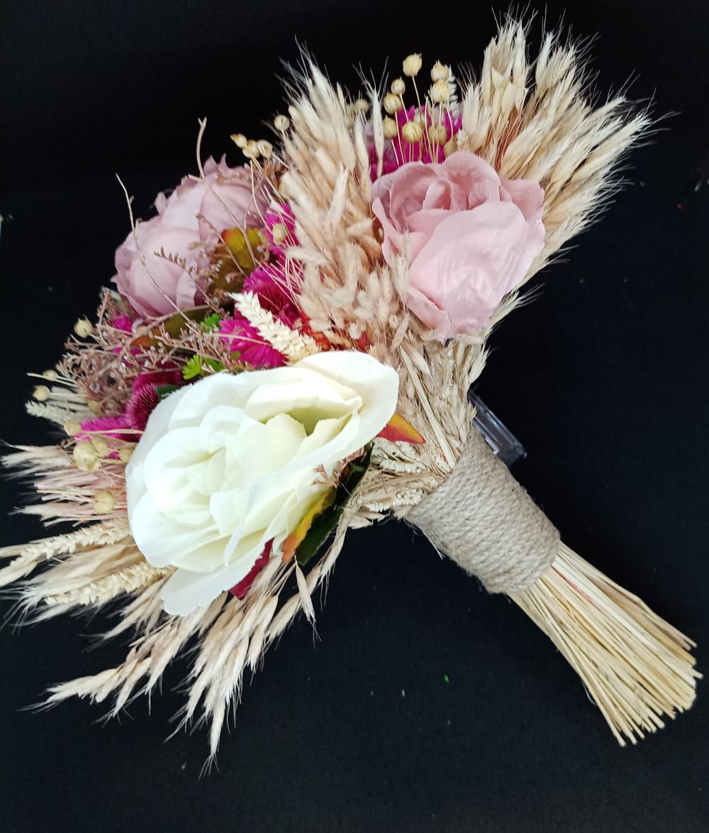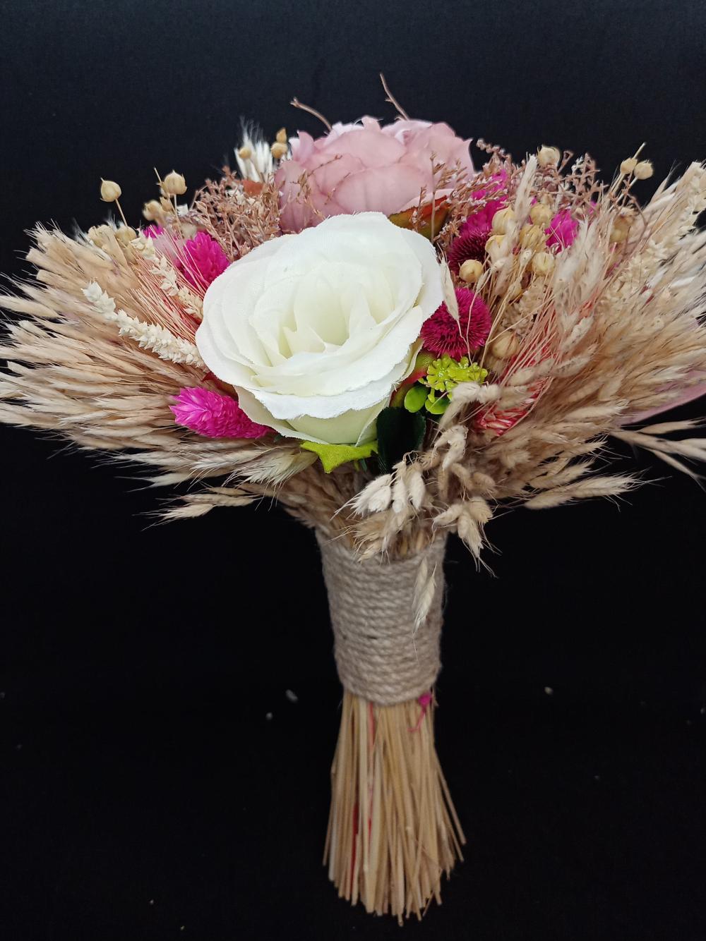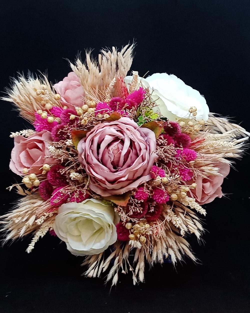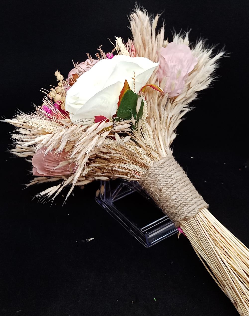 Pembe Bitki Detaylı Pembe Ve Beyaz Gül Gelin Buketi