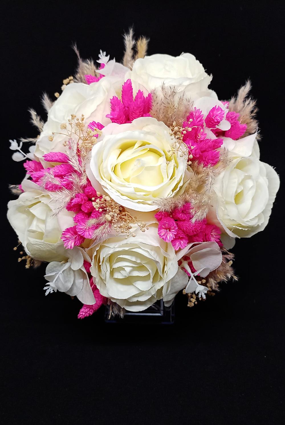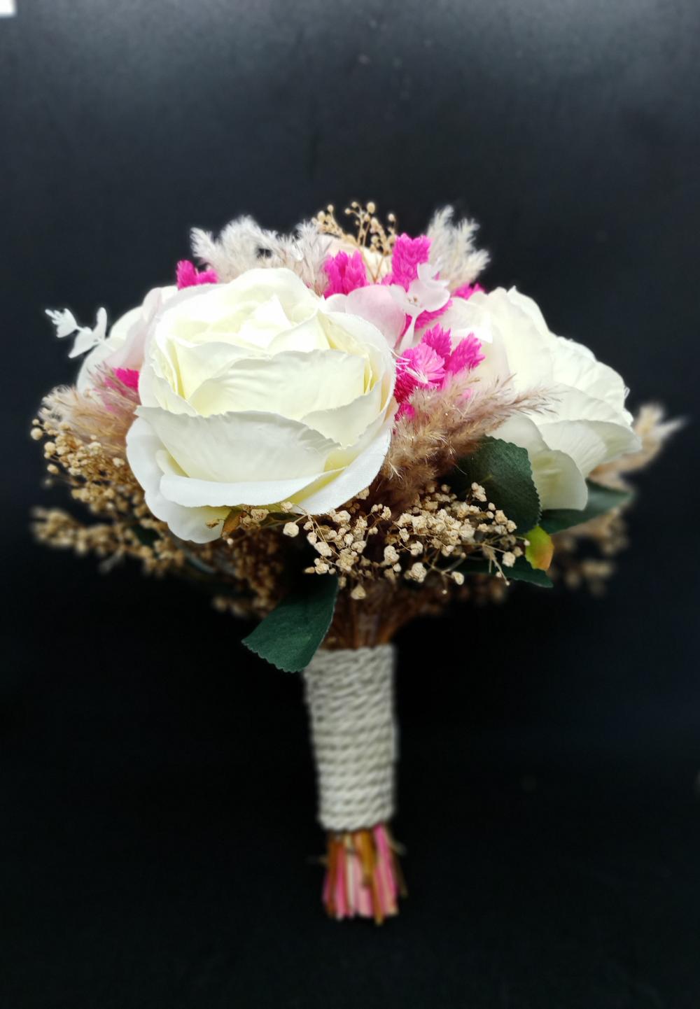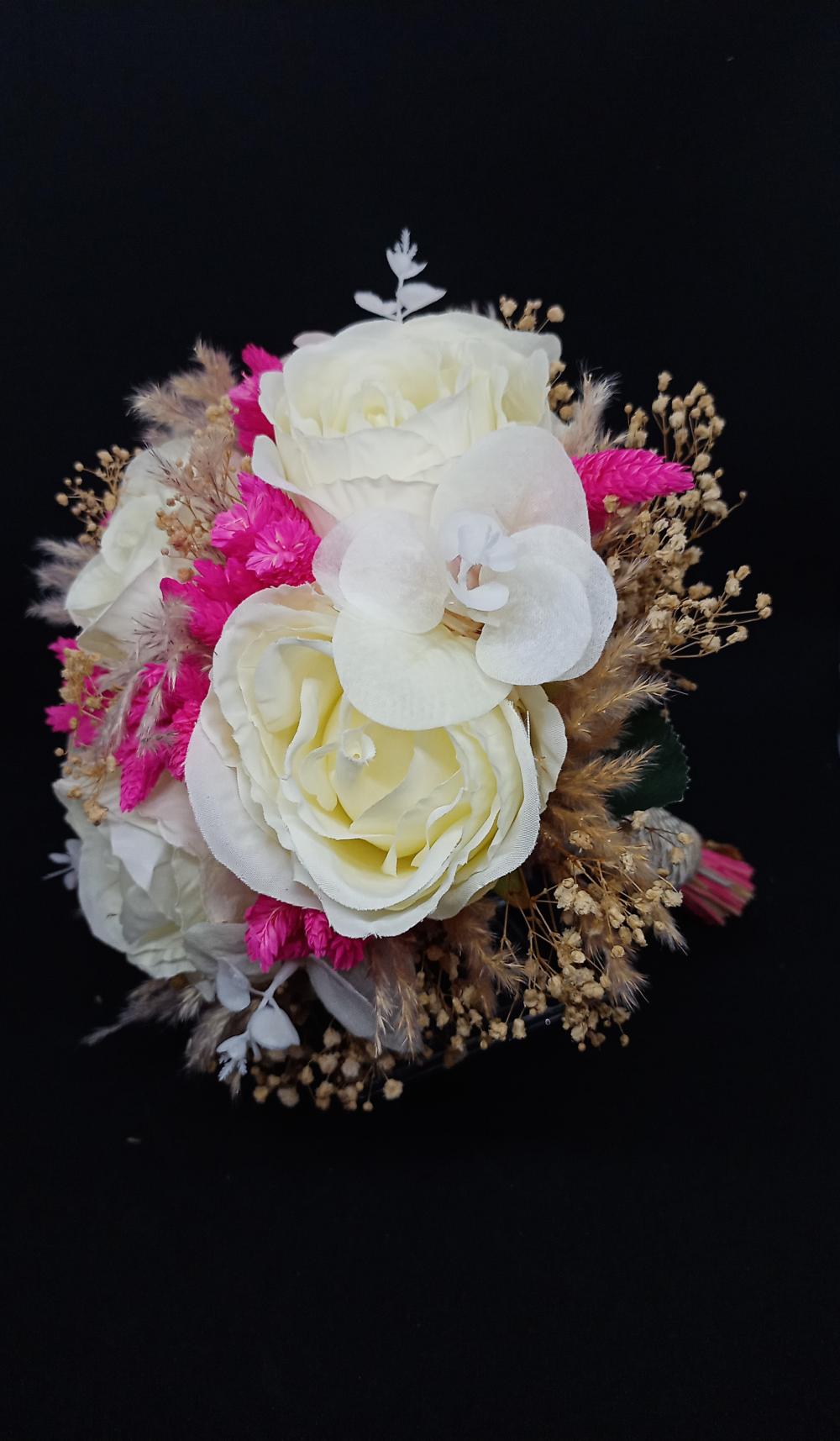 Pembe Cipsolardan Oluşan Beyaz Gelin Buketi.