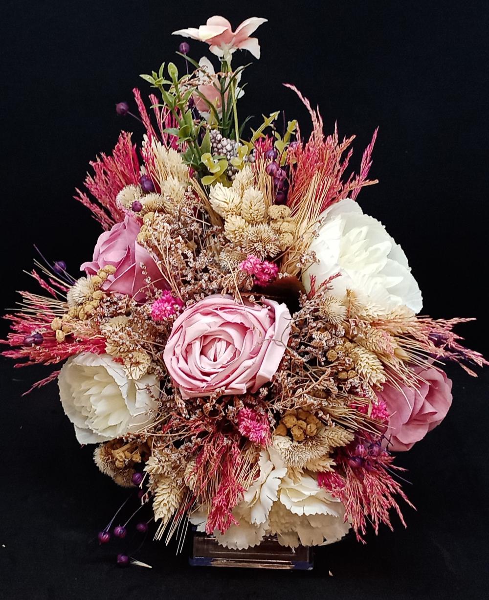 Pembe Cipsolarla Süslenmiş Gül ve Karanfil Gelin Buketi