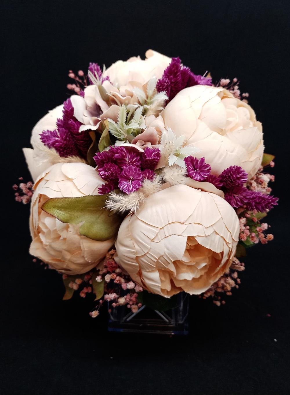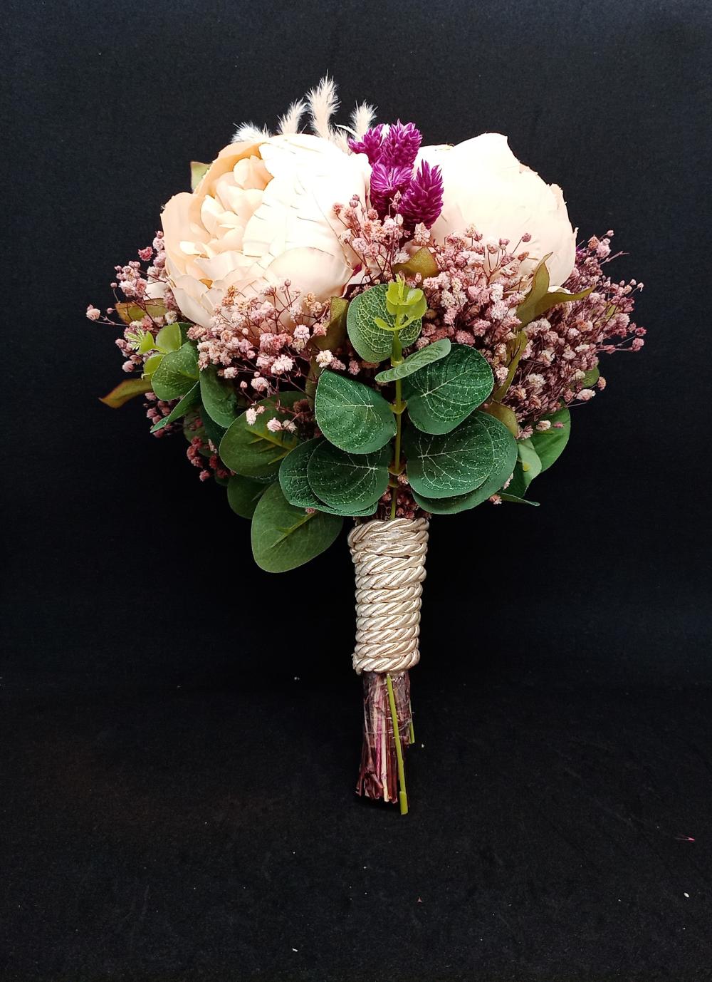 Pembe Cipsolarla Süslenmiş Yaprak Detaylı Gül Gelin Buketi