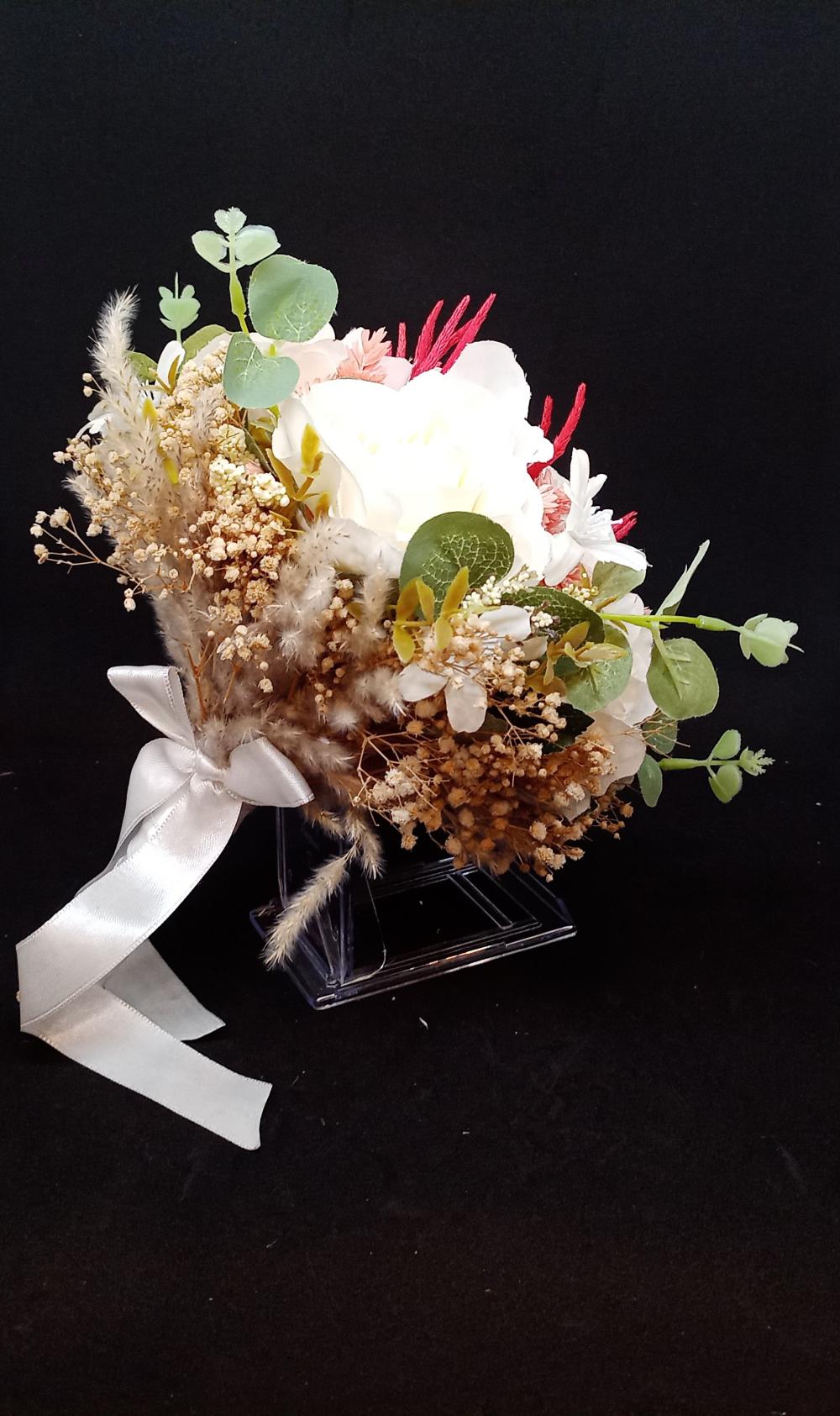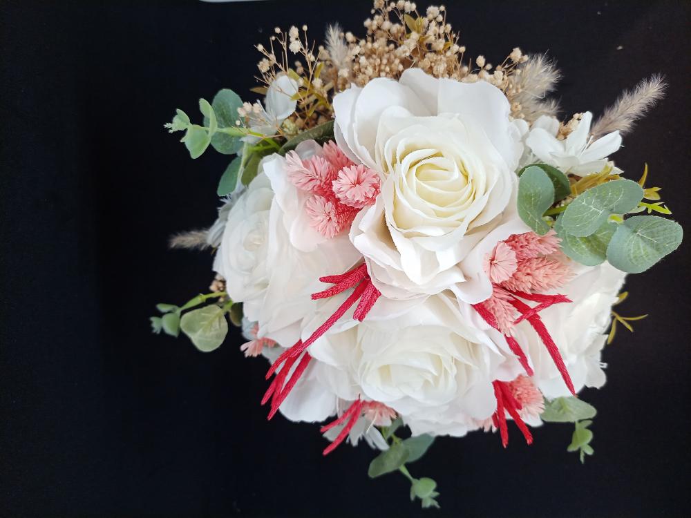 Pembe Detaylı Olan Beyaz Gül Gelin Buketi