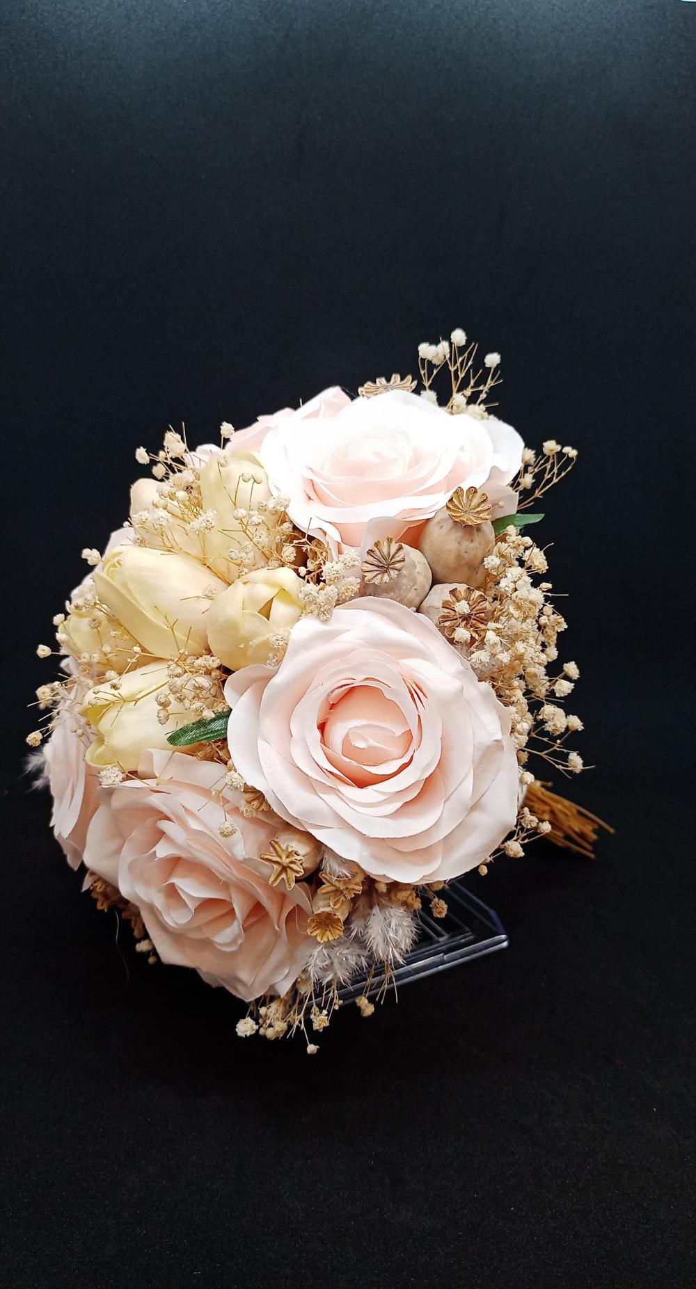 Pembe Gül Ve Lalelerden Oluşan Gelin Buketi
