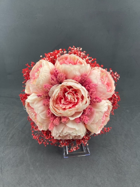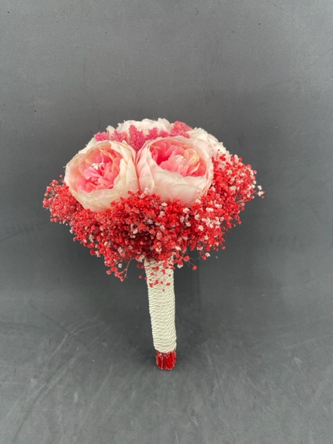 Pembe Tonlarda CipsoLarla ve Çövenlerle Süslü Şakayık Gelin Buketi
