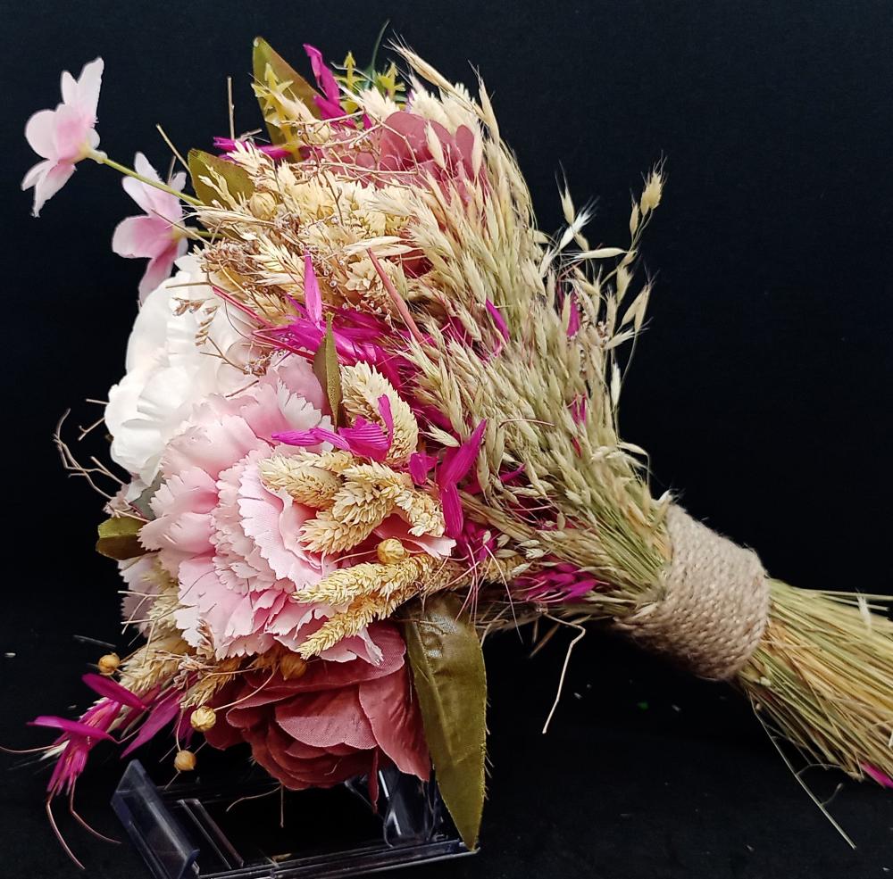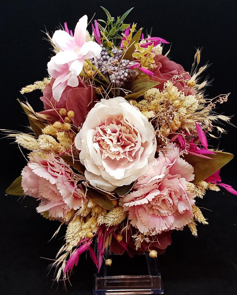 Pembe Tonlarında Gül Ve Karanfil Gelin Buketi