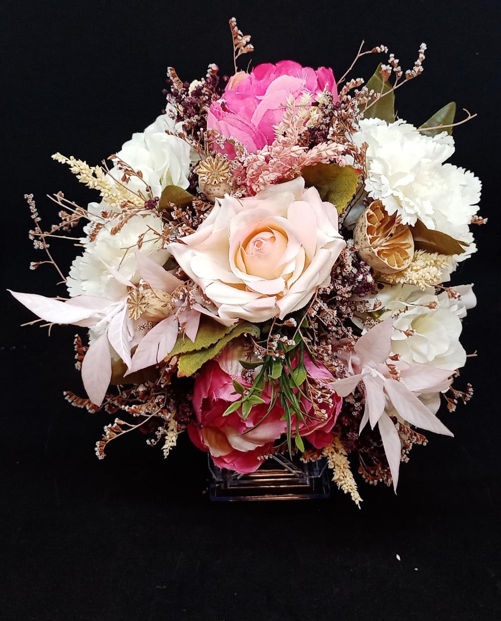 Renkli Otlardan Oluşan Gül Gelin Buketi
