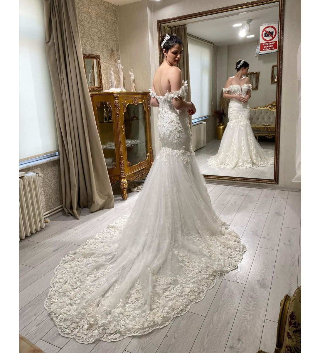 Romantik Fransız Dantel Dizaynlı Balık Gelinlik