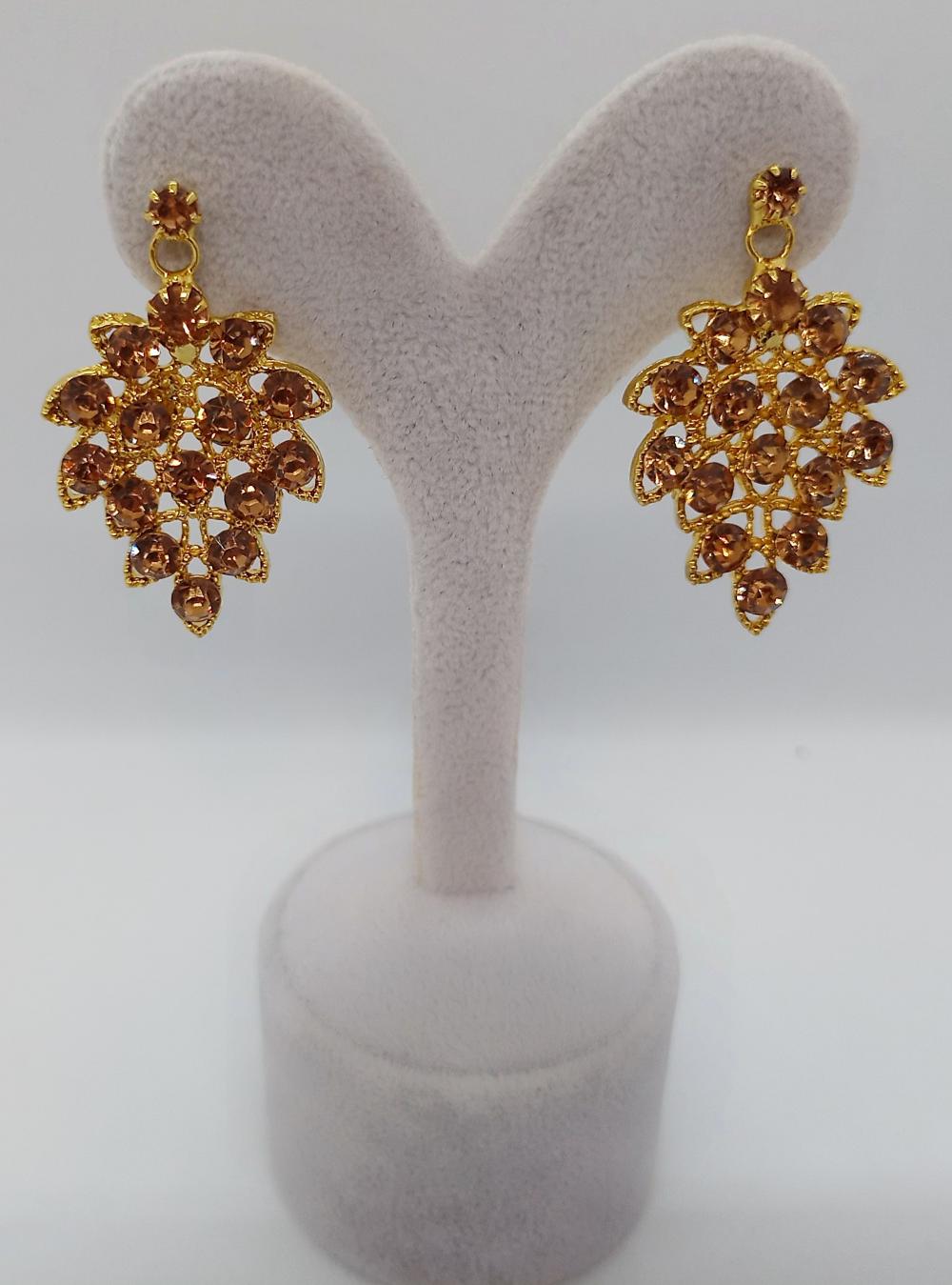 Sarı Tonlarda Küçük Taşlarla Oluşturulmuş Gelin Küpesi