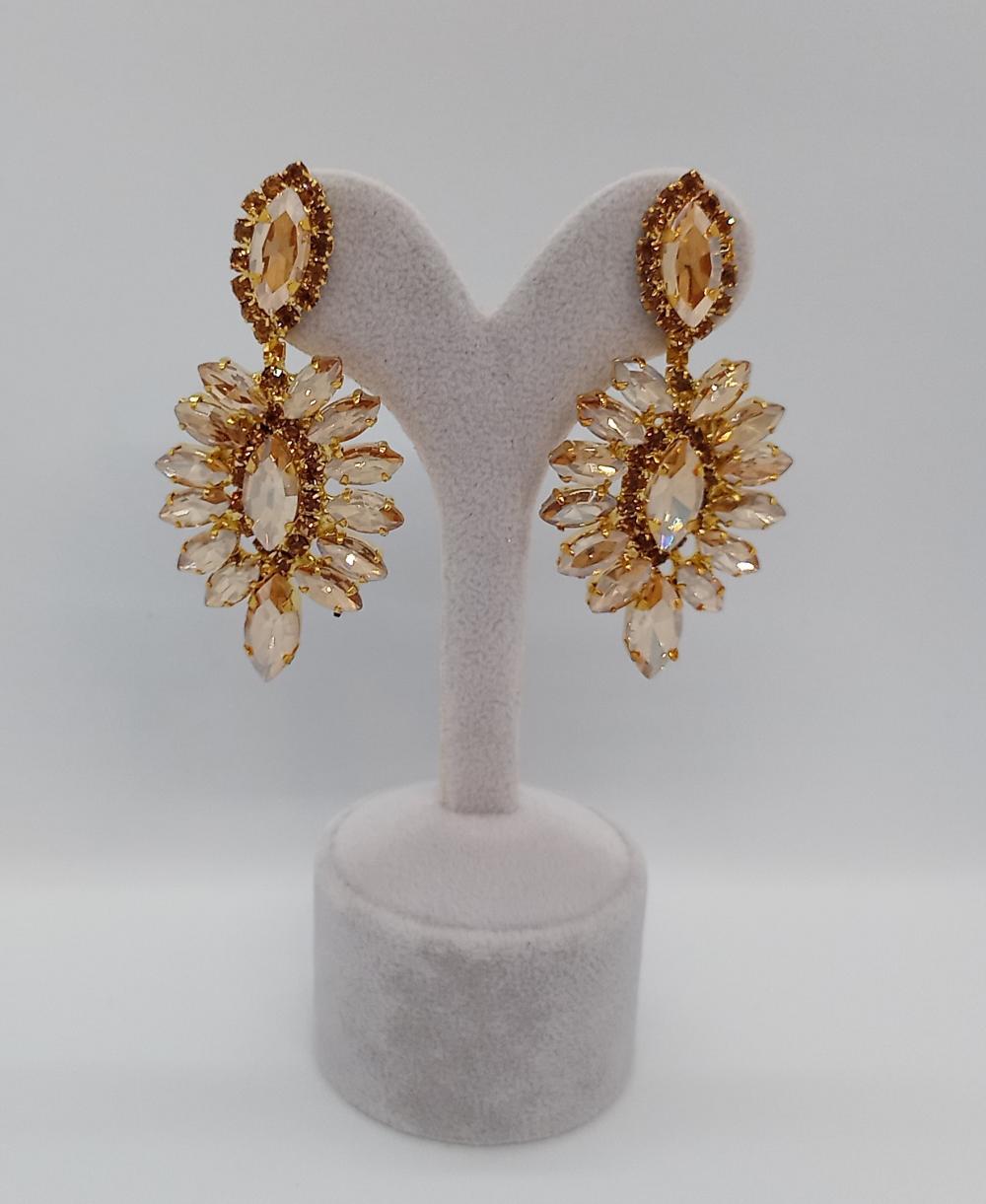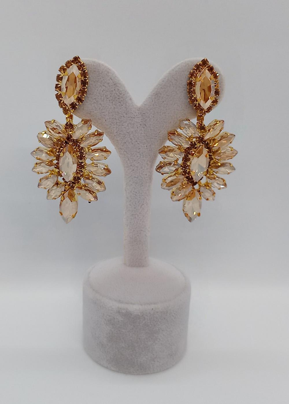 Sarı Tonlarında Yaprak Desenli Taşlı Gelin Küpesi
