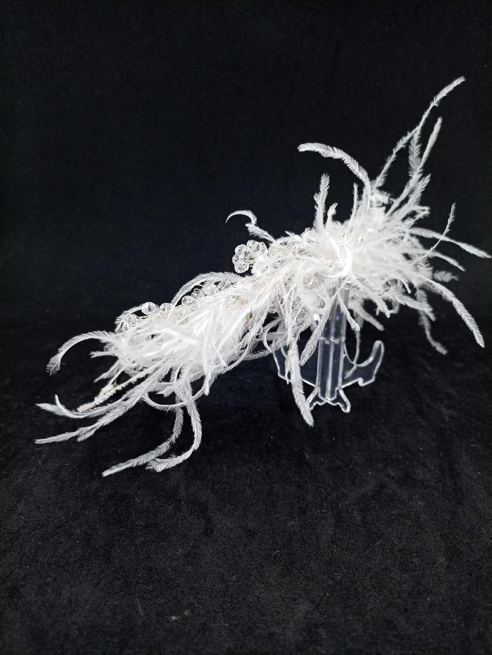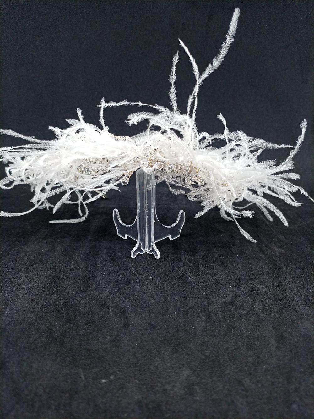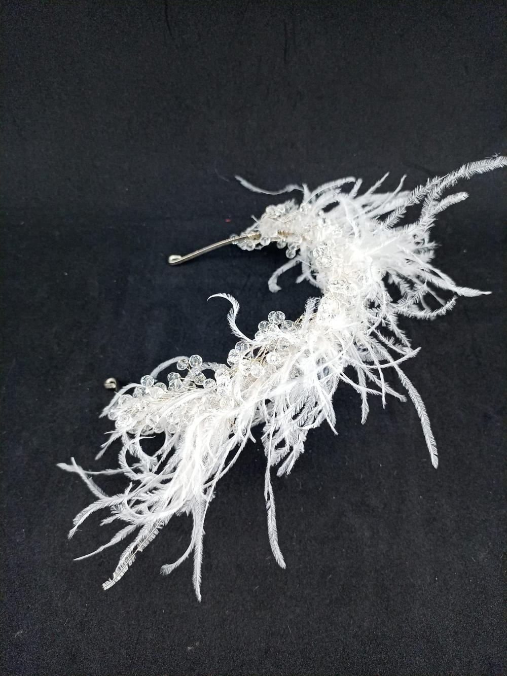 Şeffaf Kristallerle Süslenmiş Tüylü Gelin Tacı