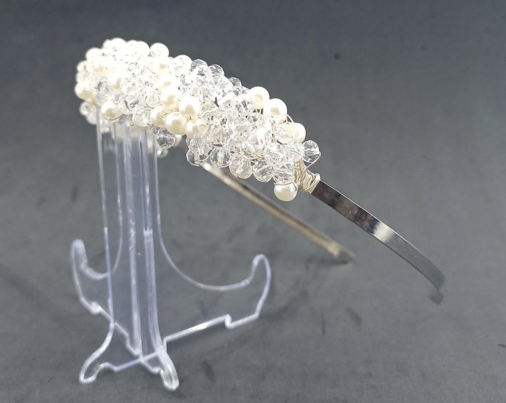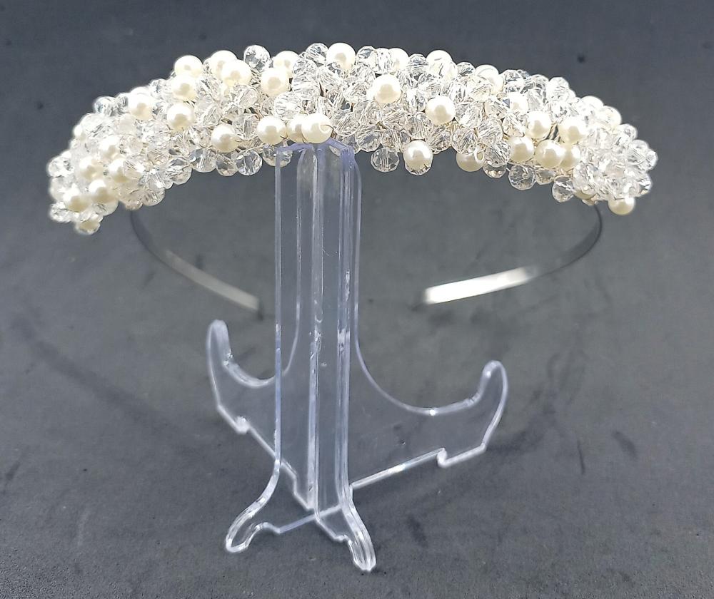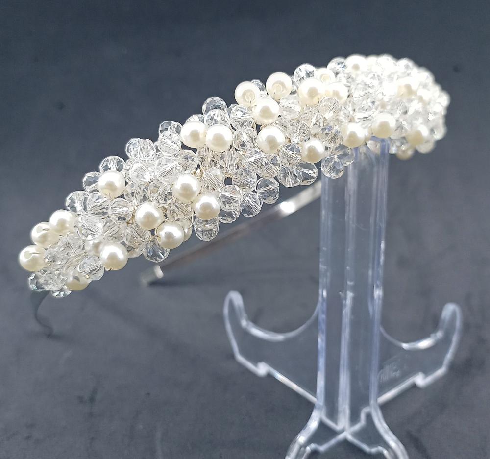 Şeffaf Top Kristallerden Oluşan İnci Detaylı Gelin Tacı