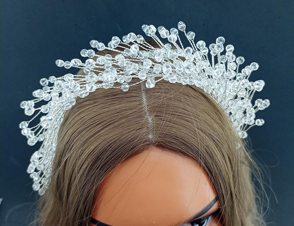 Şeffaf Top Kristallerle Oluşturulmuş Helenistik Gelin Tacı