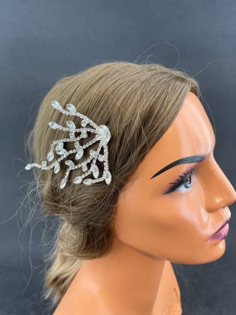 Şeffaf ve Gümüş Kristallerle Süslenmiş Nişan Kına Gelin Saç Tokası