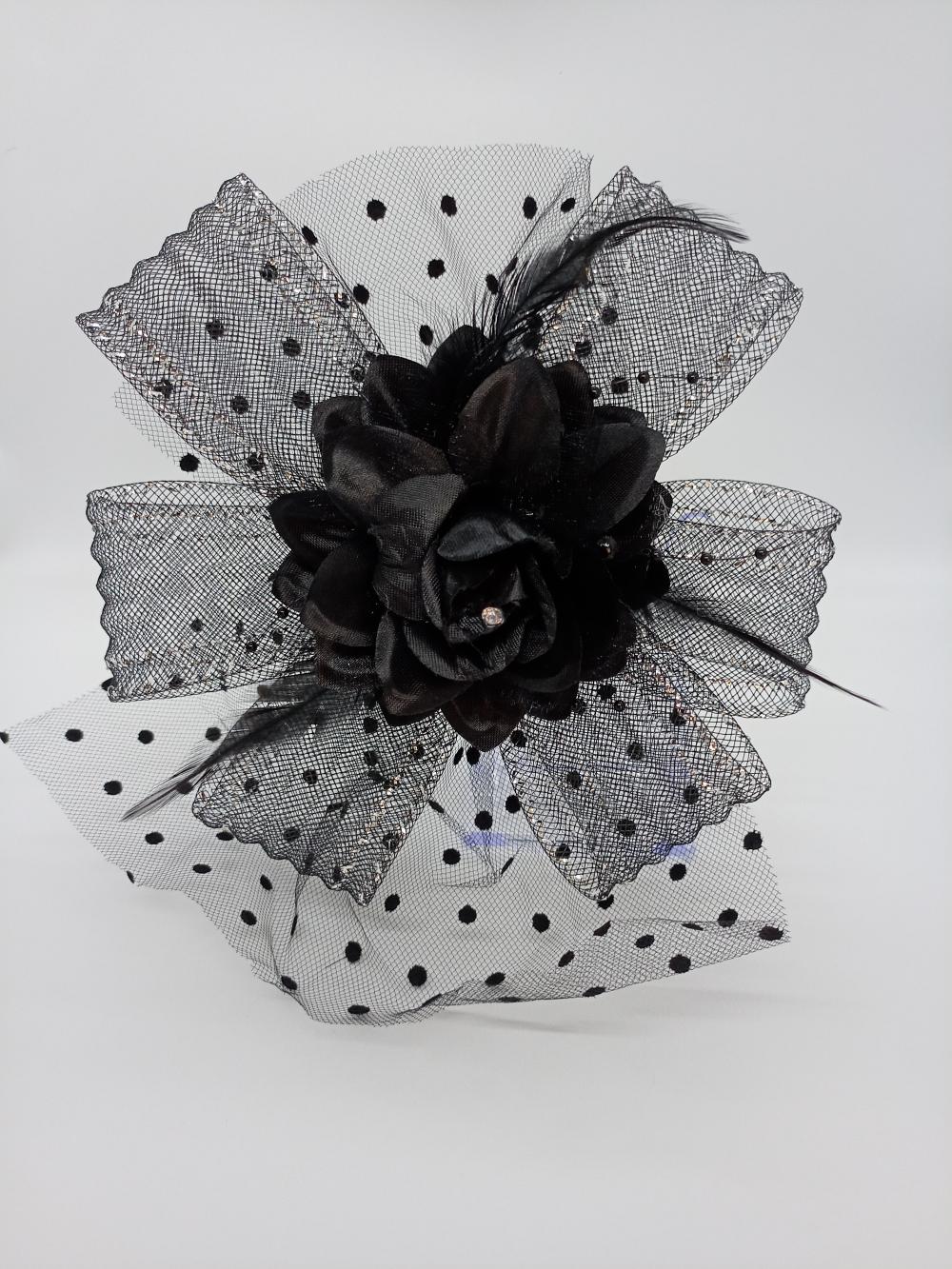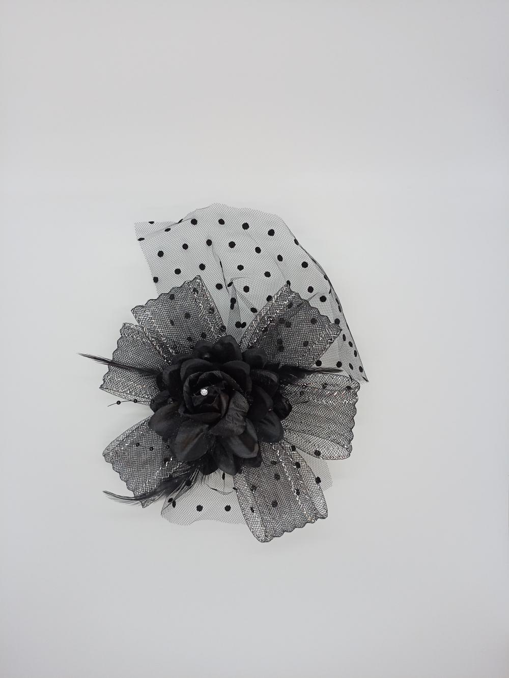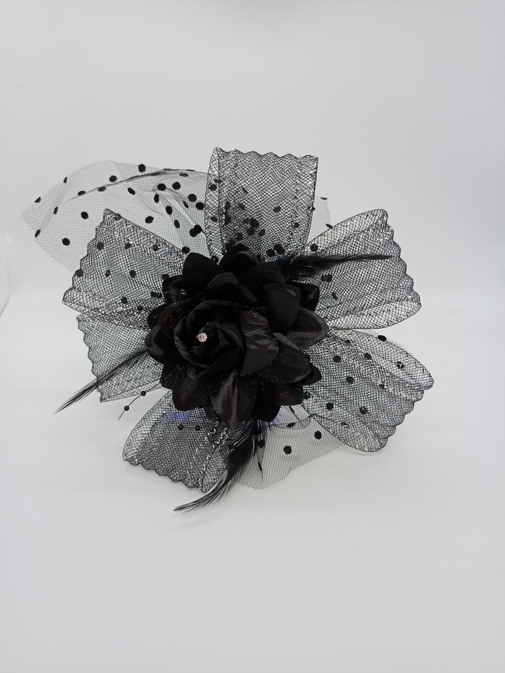 Siyah Fiyonk ve Gül Model Vualet Şapka Nikah Kepi