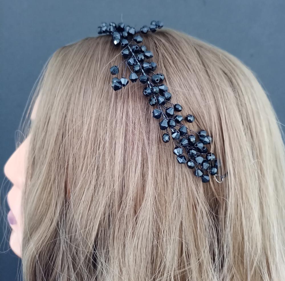 Siyah İnci Ve Kristallerden Oluşan Gelin Tacı