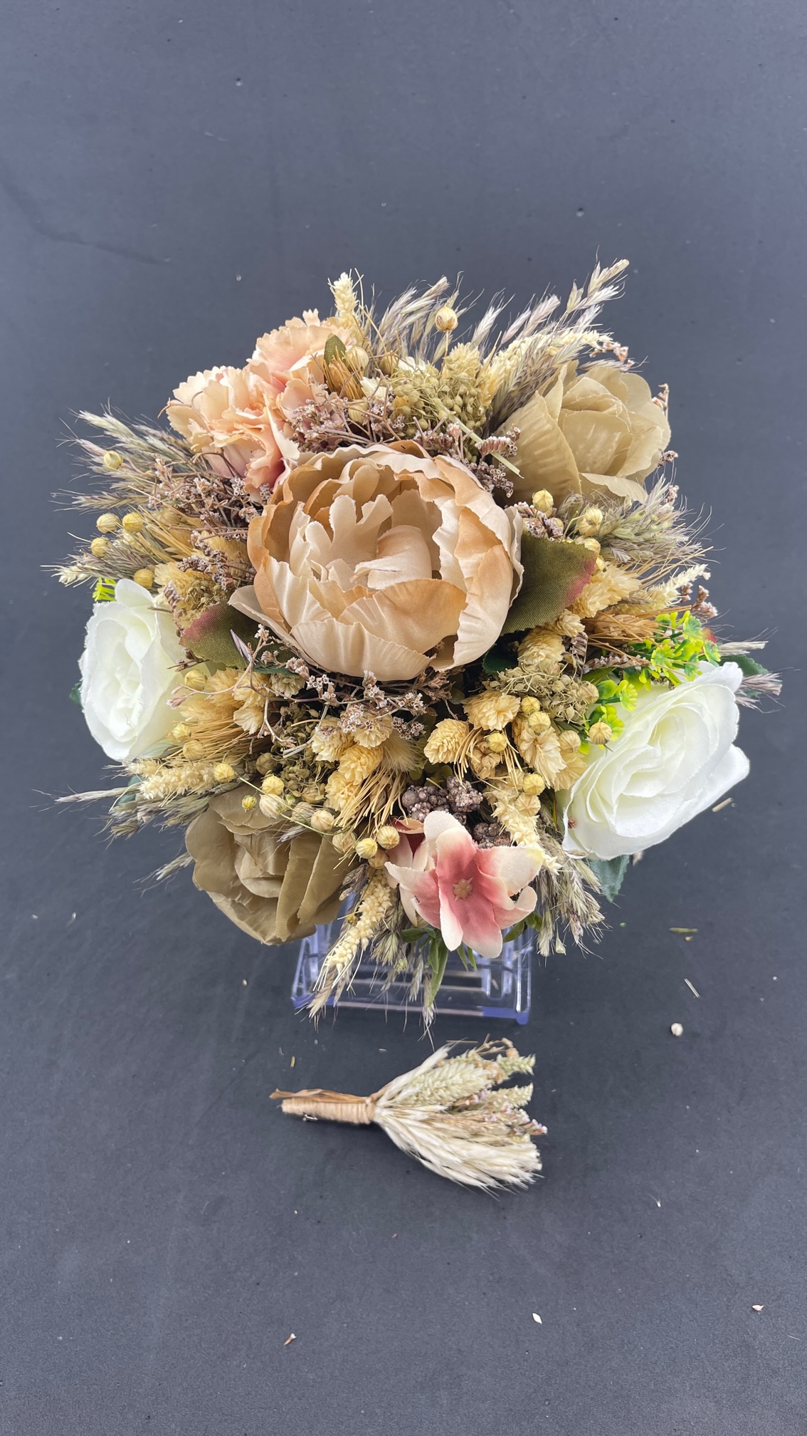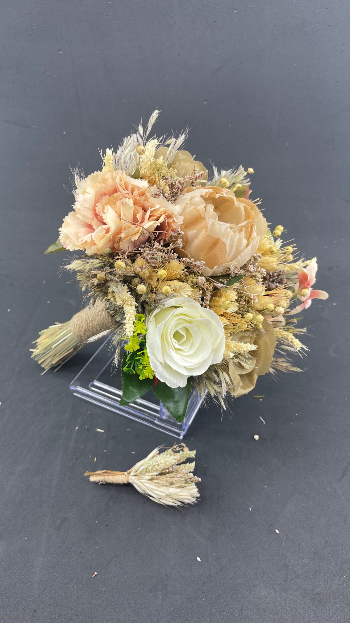 Soft Sade Renklerde Aranjman Gelin Buketi Ve Damat Yaka Çiçeği