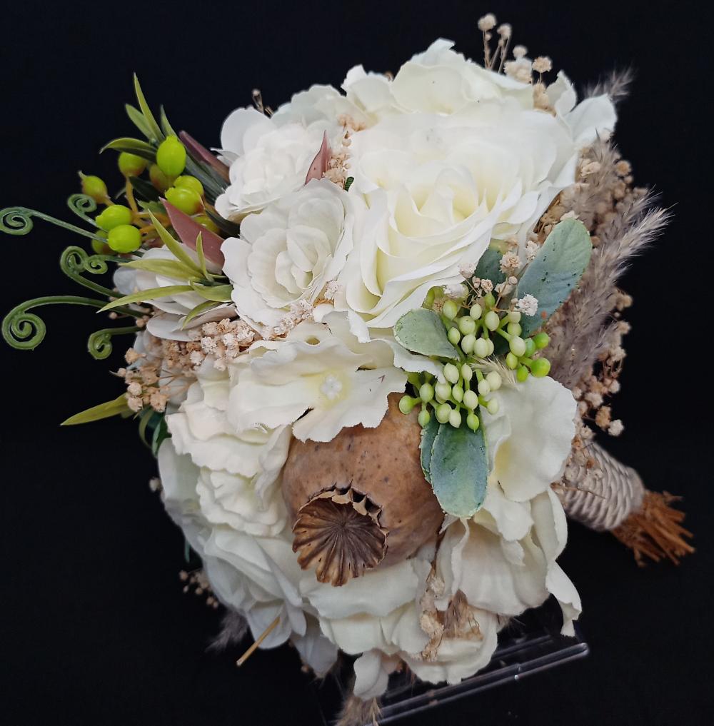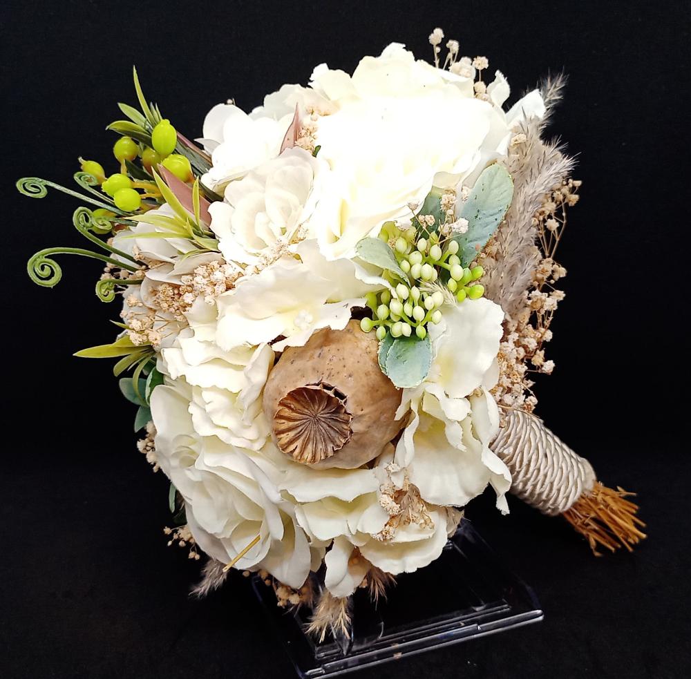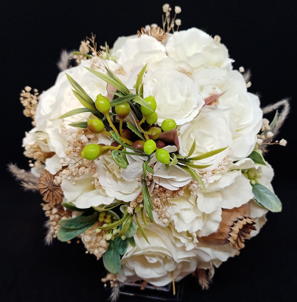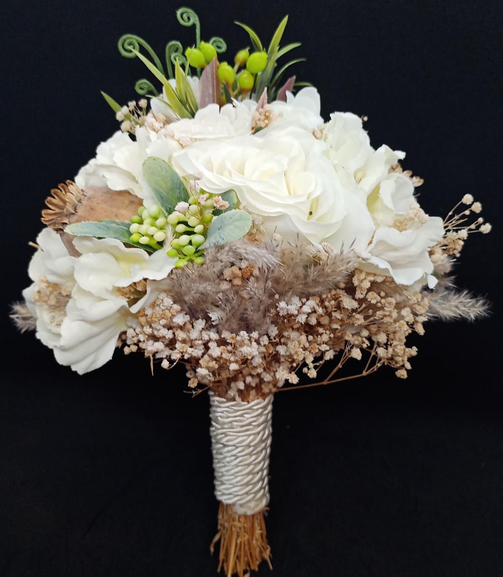 Soft Tonlarda Cipsolarla Süslenmiş Beyaz Şakayık Gelin Buketi