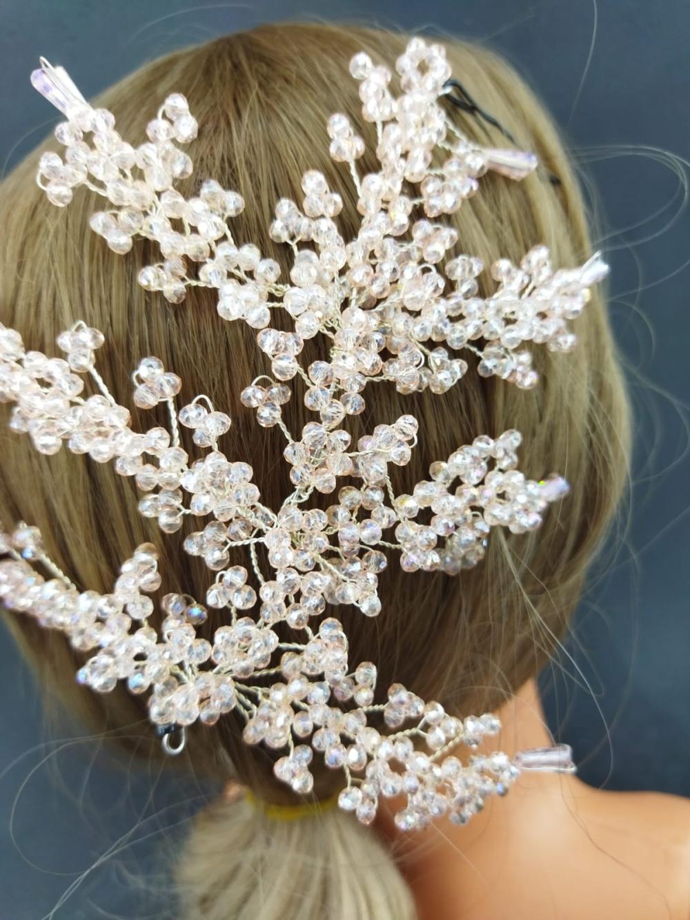 Soft Tonlarda Kristallerle Süslenmiş Gelin Saç Tokası