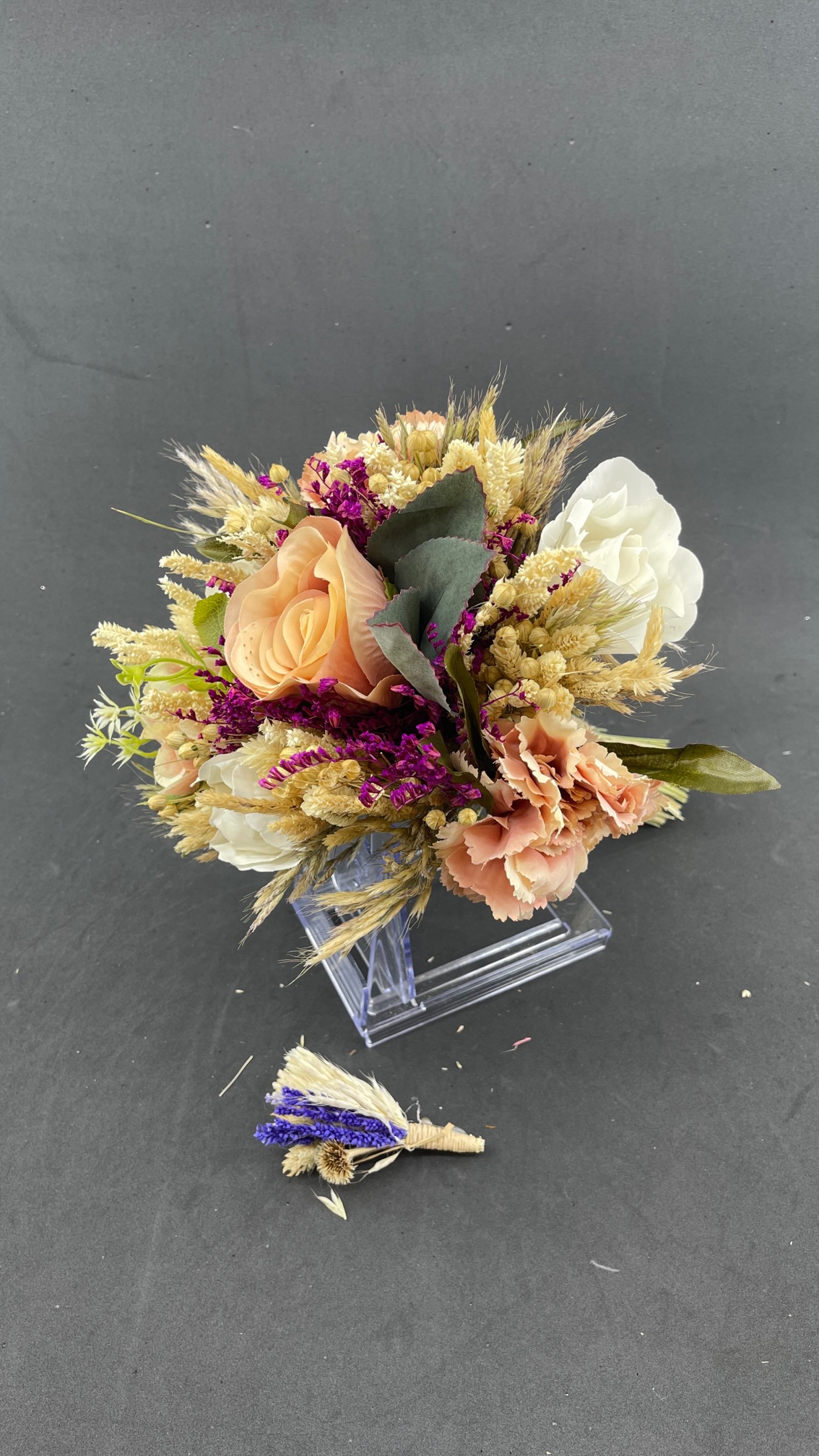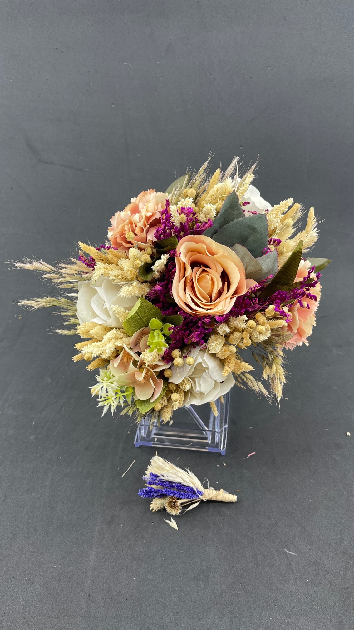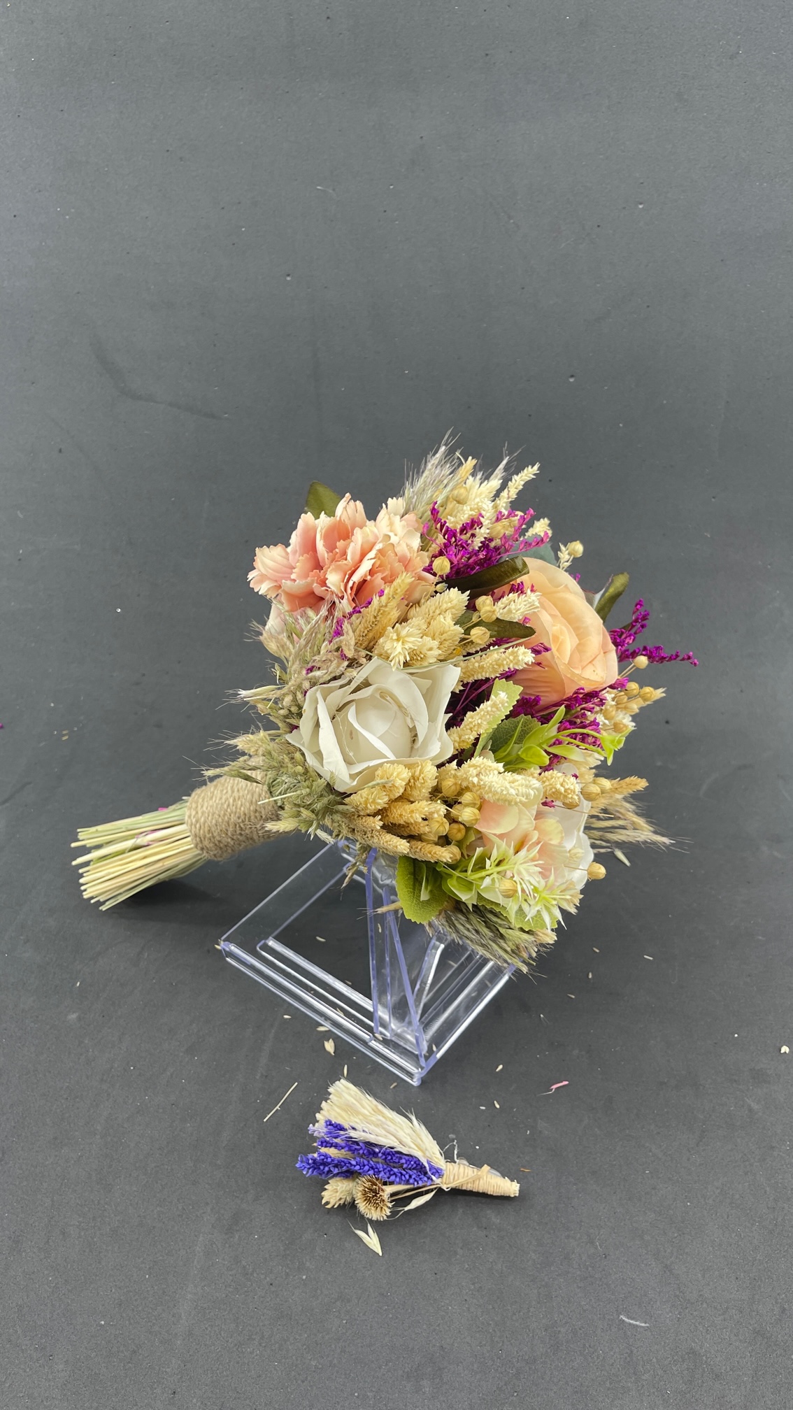 Somon Mor Pembe Renklerde Aranjman Gelin Buketi Ve Damat Yaka Çiçeği