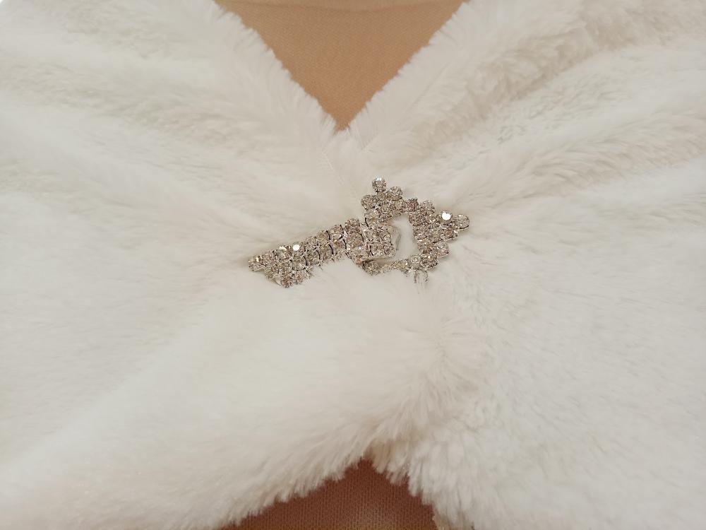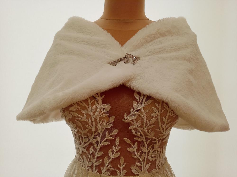 Broşlu Zirkon Taşlı Beyaz Renk Gelin Etol Bolero Kürk