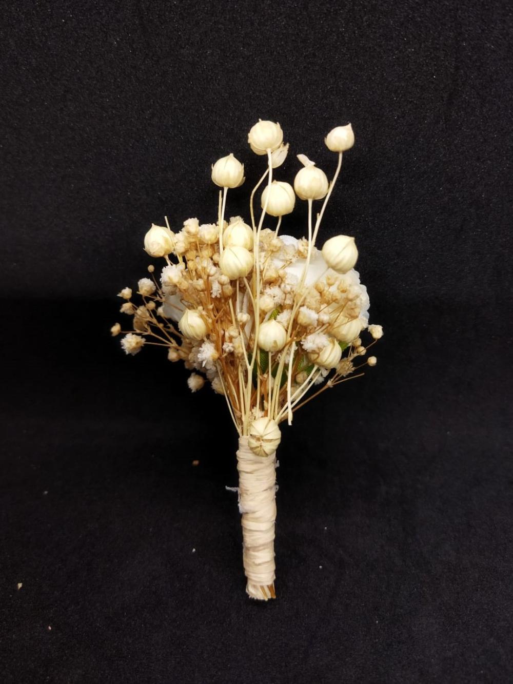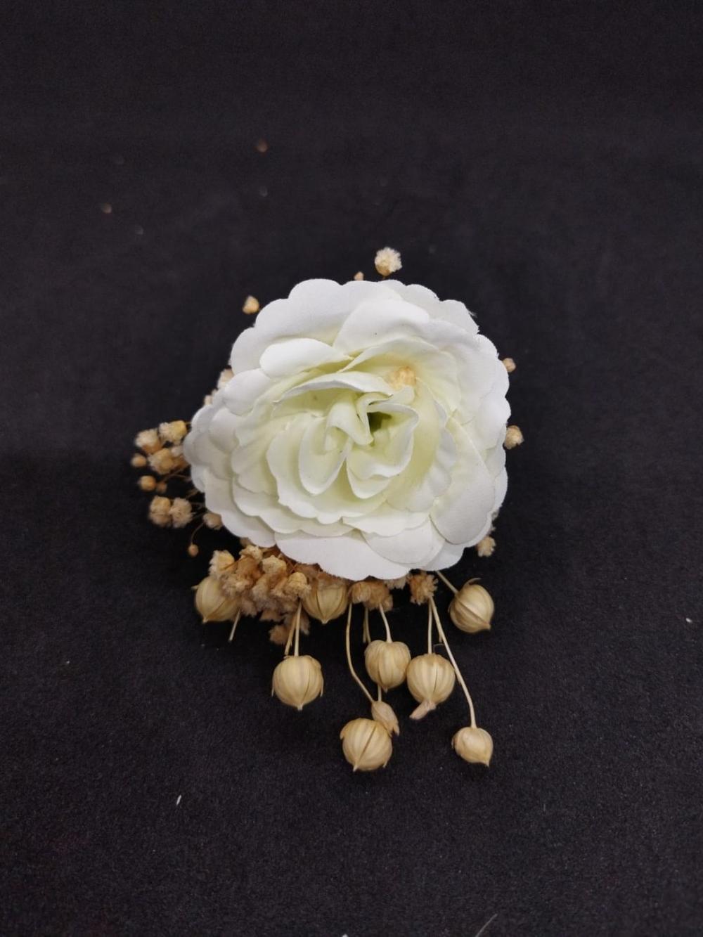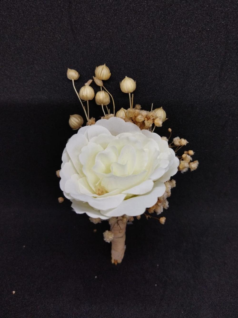 Tek Beyaz Gülden Oluşan Damat Yaka Çiçeği